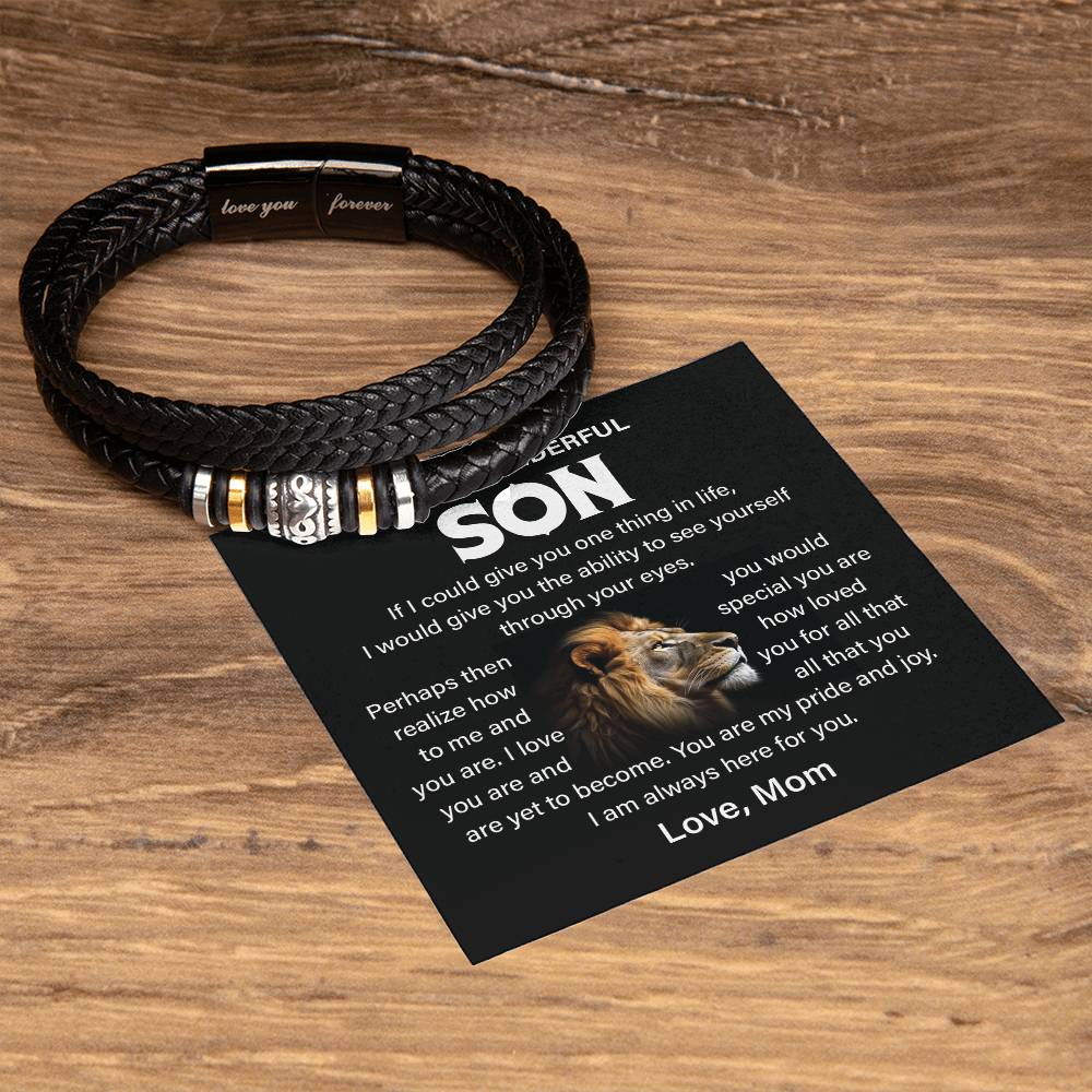Give your son this mighty lion-themed bracelet as a gift by Mom. Designed to be both strong and stylish, this sentimental gift has a heartfelt message card reminding him that you are there to love, support, and be proud of him. An ideal present on birthdays, graduation or special milestones.
