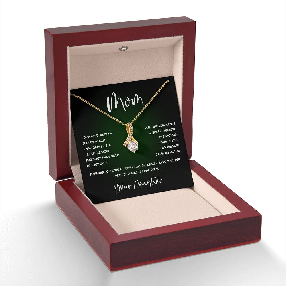 Mom Necklace from Daughter – Wisdom & Gratitude Gift with Message Card