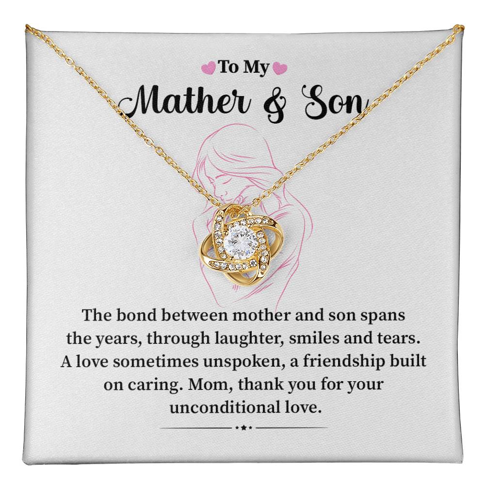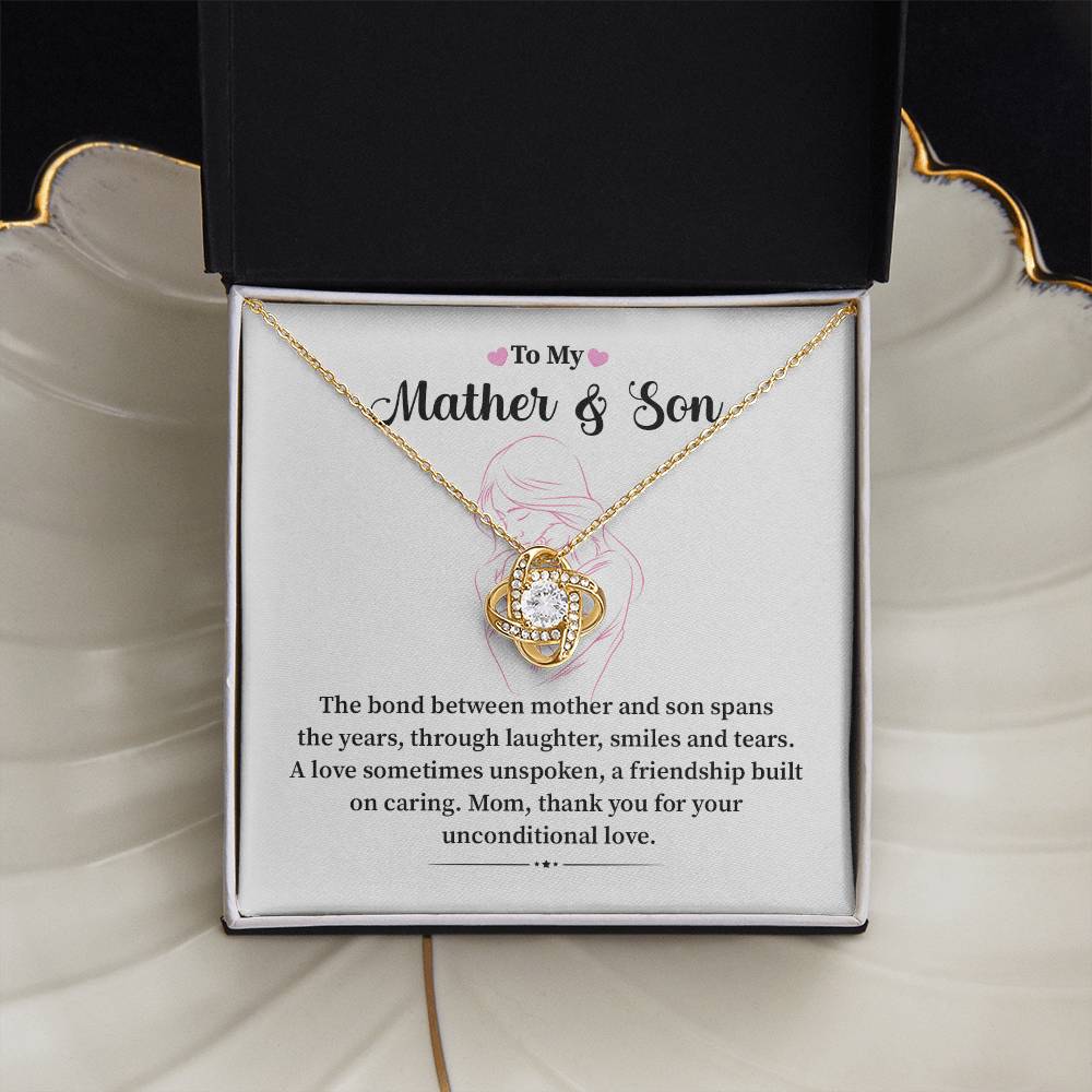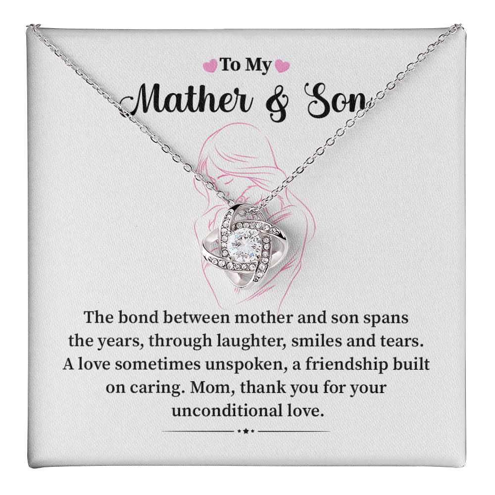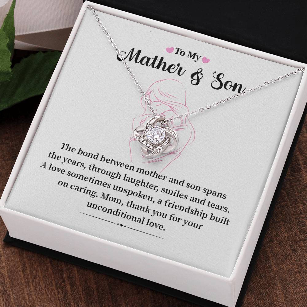 Celebrate the lovely mother son relationship with this touching love knot necklace. It can be a Mother Day, her birthday, or simply because, but this thoughtful gift is accompanied by a touching message card and comes in a high-quality gift box: the best way to show your gratitude and love.