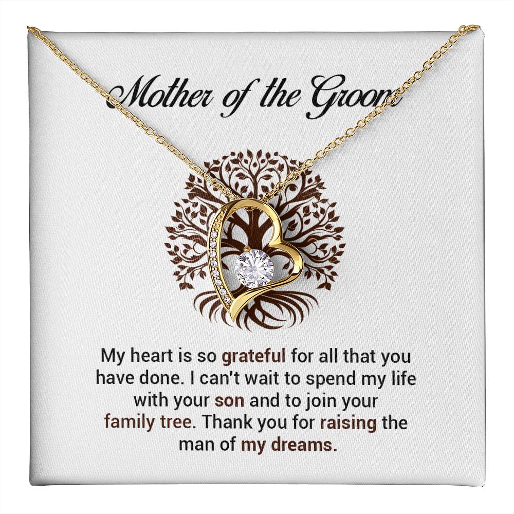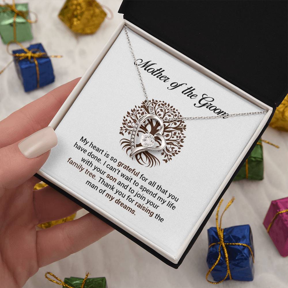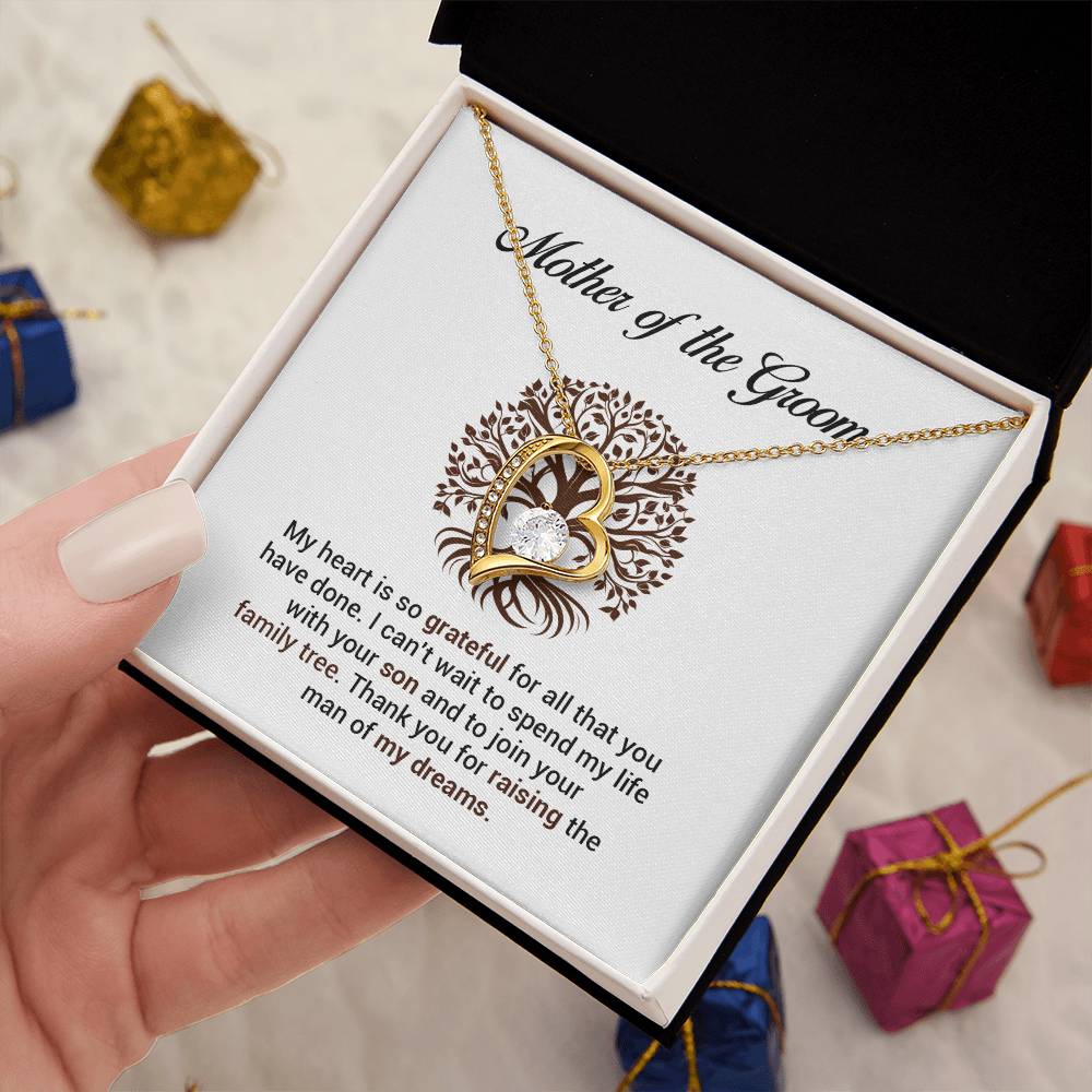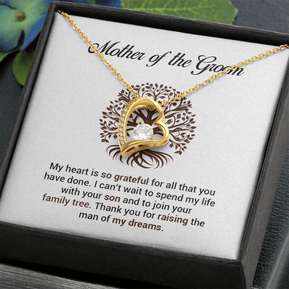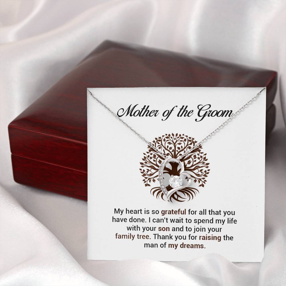 This mother of the groom necklace gift from bride will make your wedding day one to remember. The pendant is designed with beauty and appreciation and comes with a message card, letting you honor the woman who raised your partner. Perfect for wedding day gifts, thank you gifts for the bride and keepsakes for the groom’s mom.