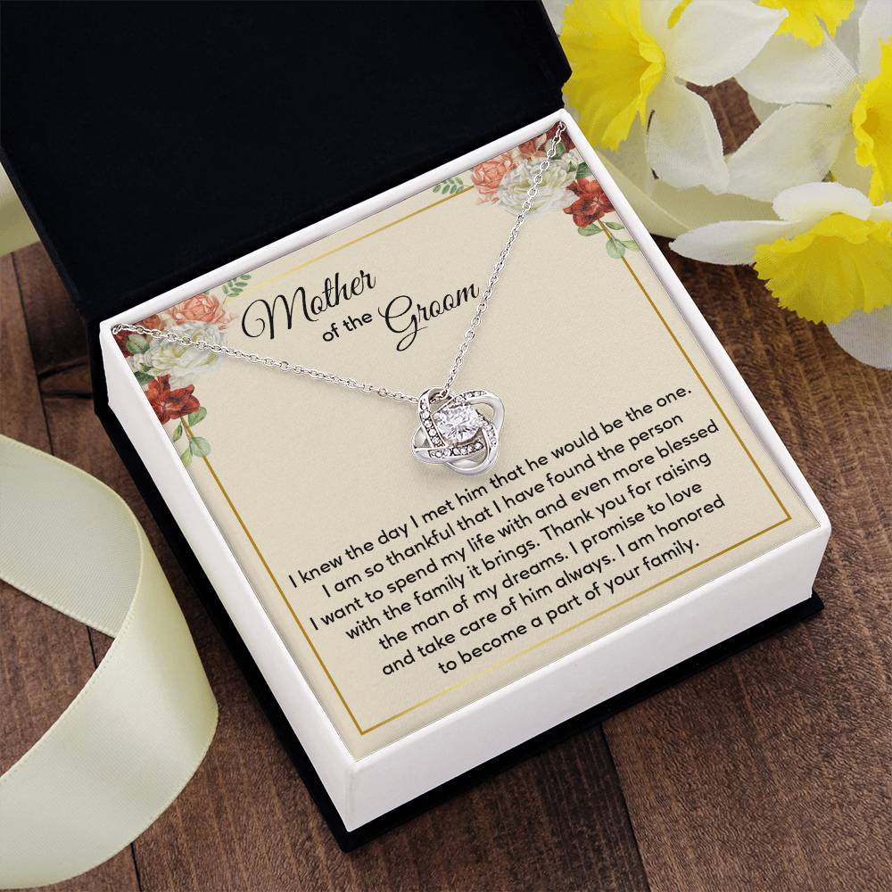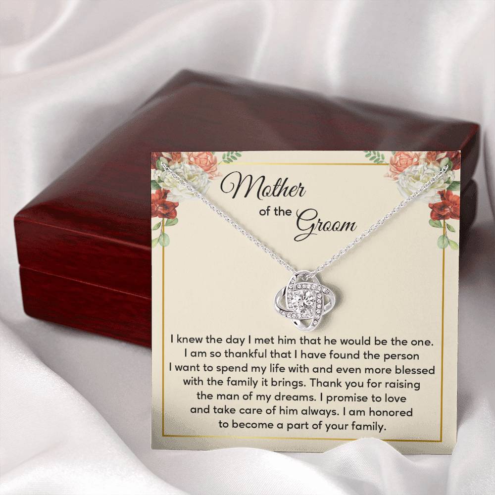 If you’re giving a gift to your mother-in-law on your wedding day or looking for a special present from bride to groom’s mom, this necklace and message card combo expresses the moment with style. A wonderful wedding jewelry gift for the groom’s mother, it honors love, gratitude and the beginning of a lasting relationship.