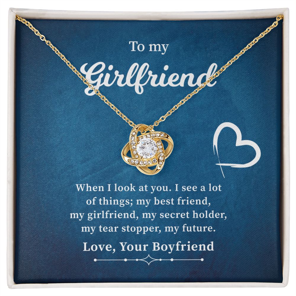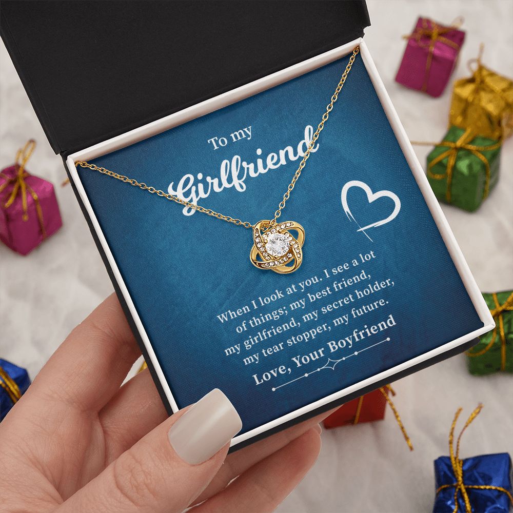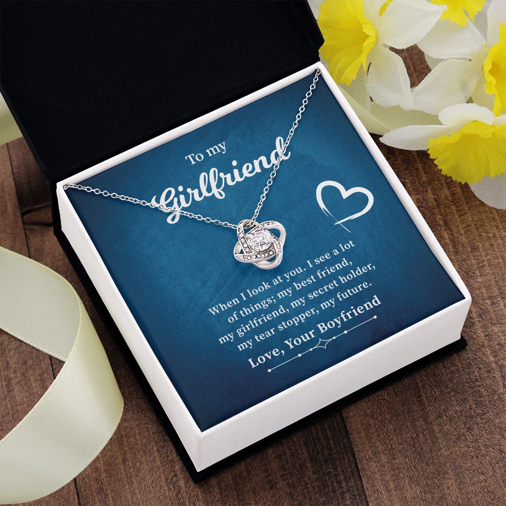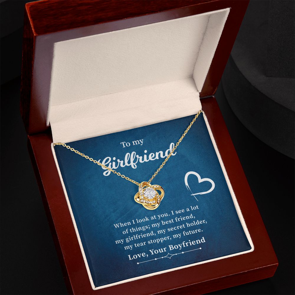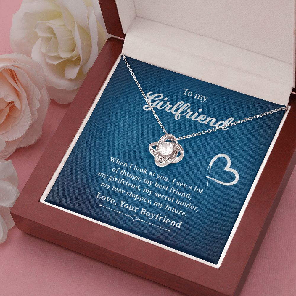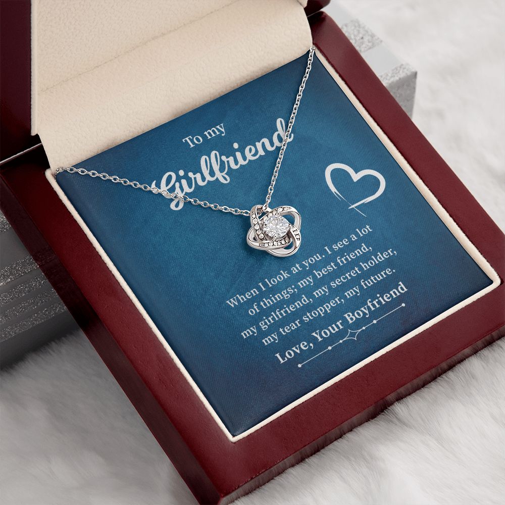 Imagine her reaction receiving this beautiful Love Knot Necklace. Representing an unbreakable bond between two souls, this piece features a beautiful pendant embellished with premium cubic zirconia crystals. Surprise your loved one with this gorgeous gift today!