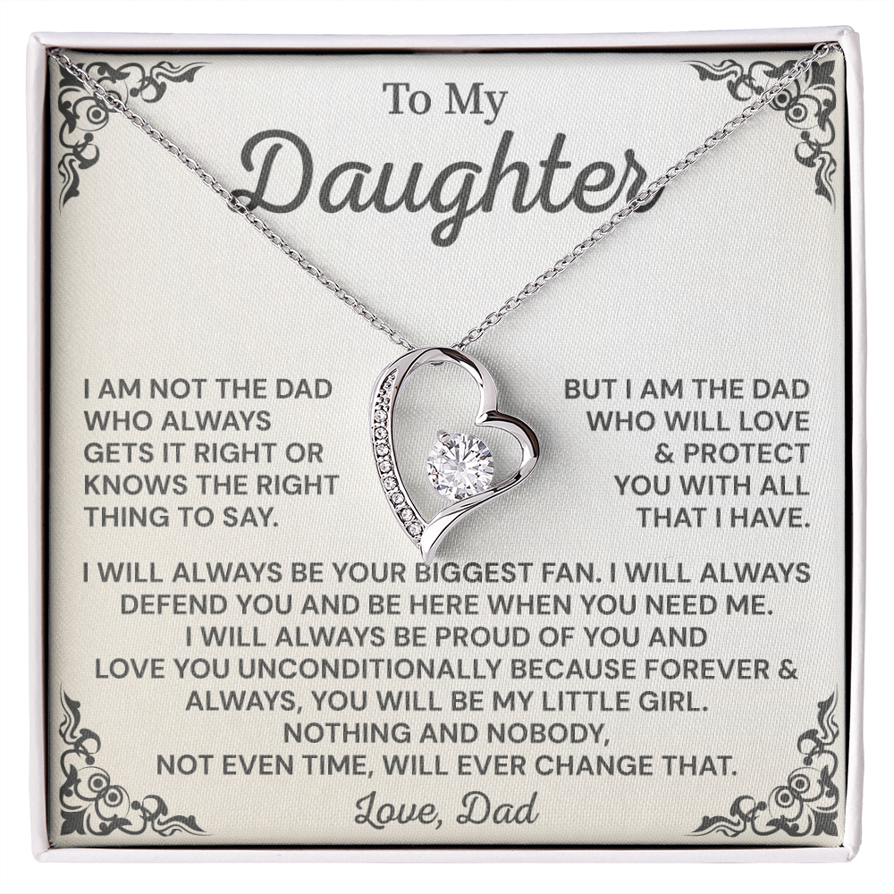 Give your daughter a timeless gift that speaks from the heart. This elegant heart-shaped necklace, paired with a powerful "Love and Protect" message card, serves as a lasting reminder of a father's unconditional love and unwavering support.