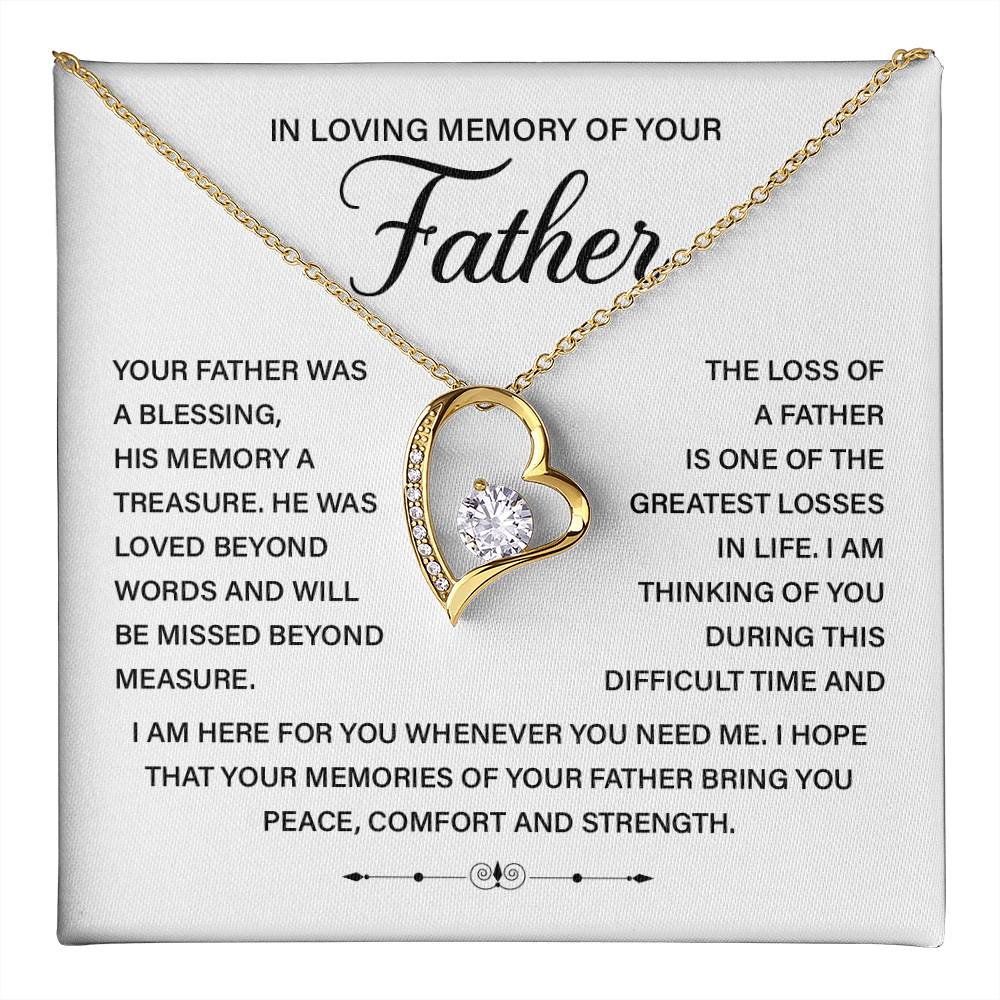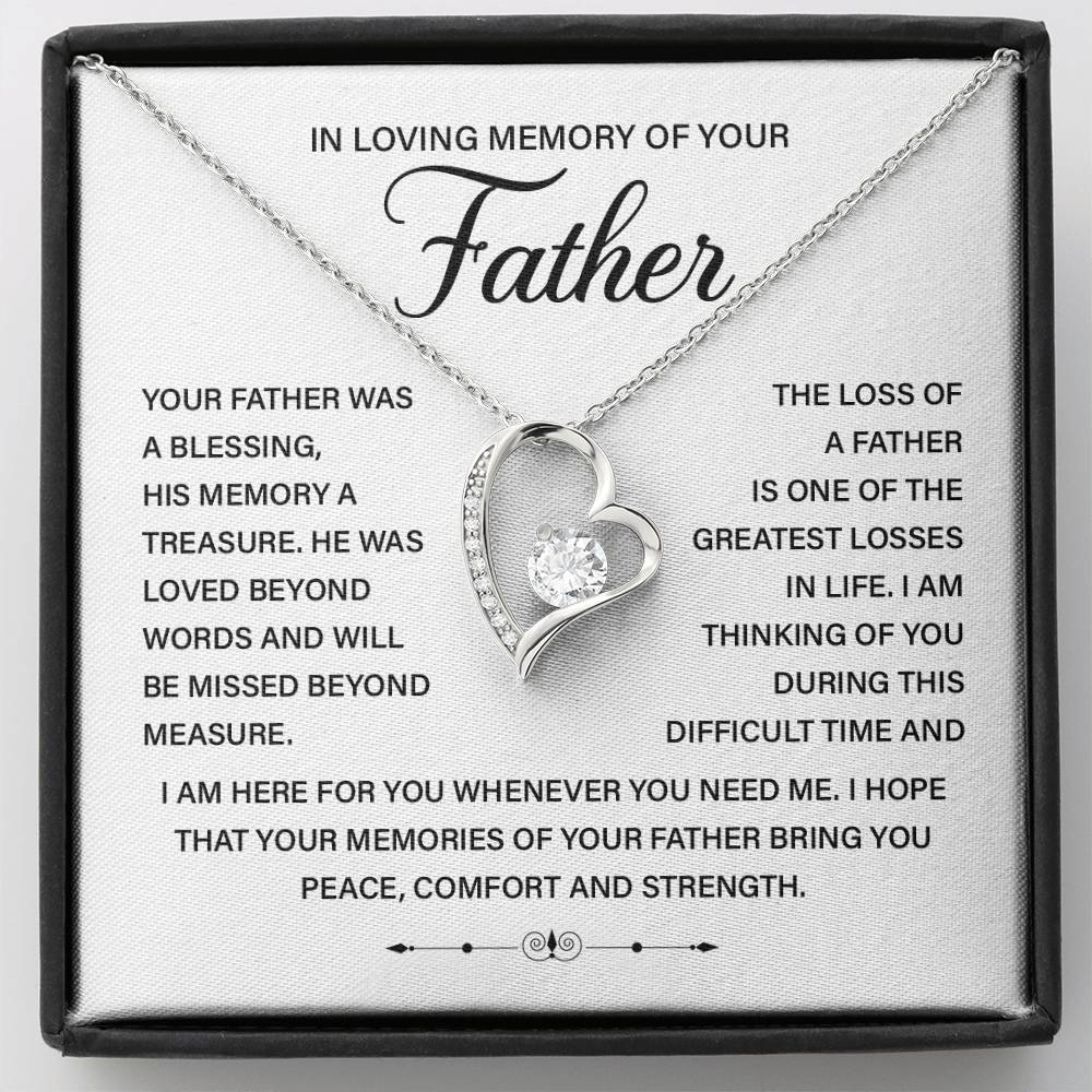This sympathy memorial necklace is a gorgeous gift to make a remembrance of a father who is no more. Carefully designed and made with a heart-shaped pendant and a sparkling stone, it is accompanied by a heartfelt remembrance message card and shipped in a gift-ready box, which makes it an ideal gift to people who have lost someone close to them.