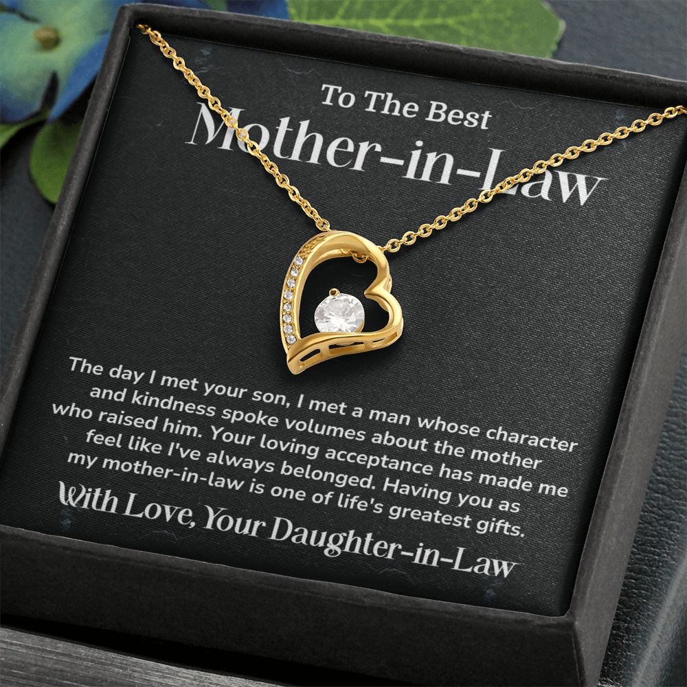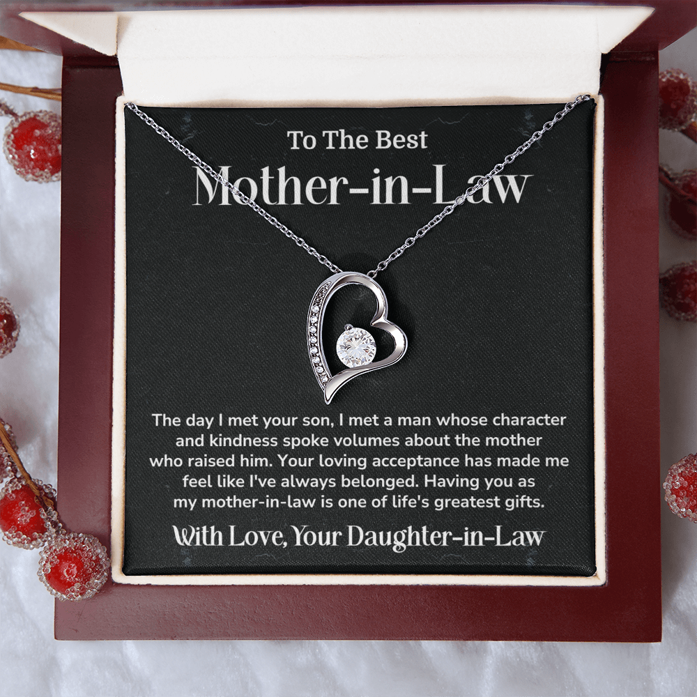 This beautiful heart shaped necklace is a way of saying thanks to the woman who brought up the love of your life. This beautiful jewelry item with a touching message card is an ideal gift to your mother-in-law on your wedding day, birthday or Mother Day. Give her a token of your appreciation, love and everlasting bonding.