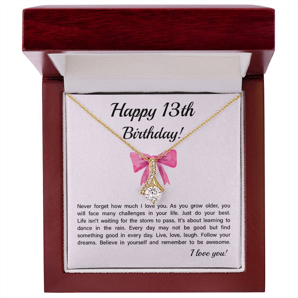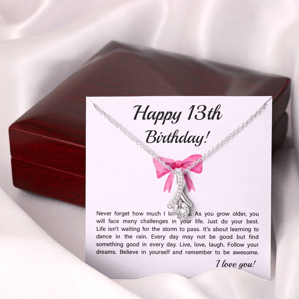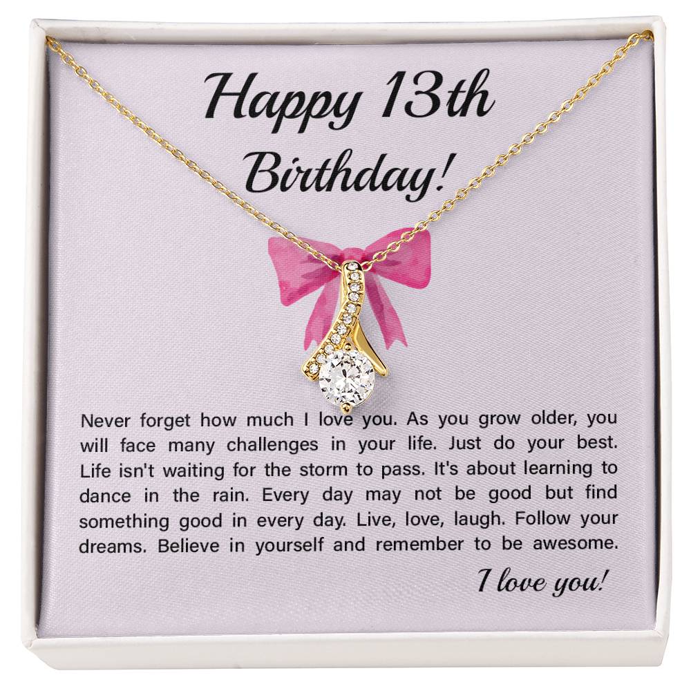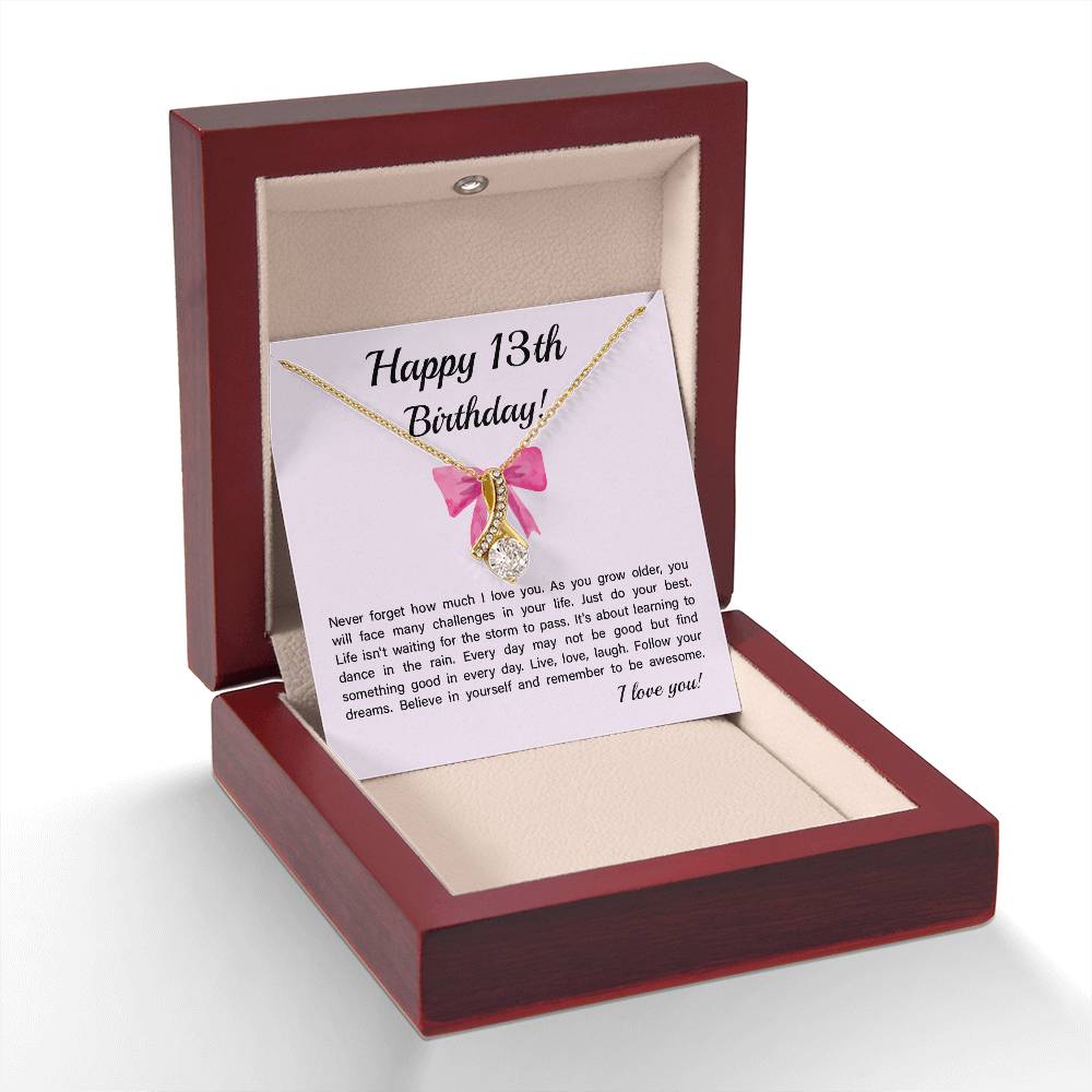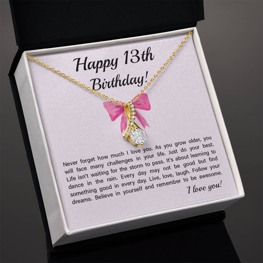 13th Birthday Necklace Gift for Teen Girl – Inspirational Card & Bow