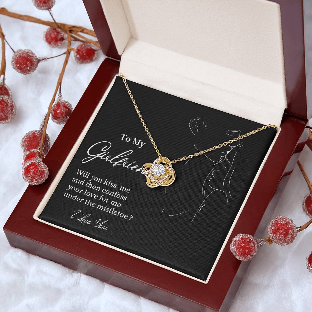 Want to buy a romantic necklace to your girlfriend? This beautiful love knot necklace and a sweet message card is a great gift to give on birthdays, anniversaries, Valentine day or just because. This is a thoughtful gift that will surprise her and make her know how much you care.