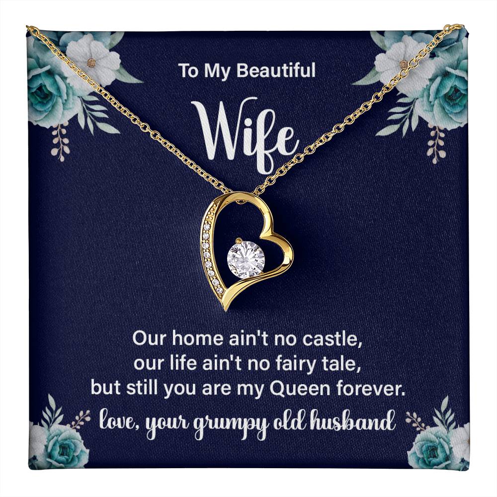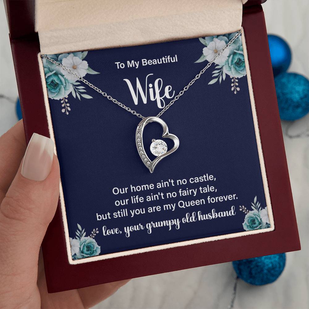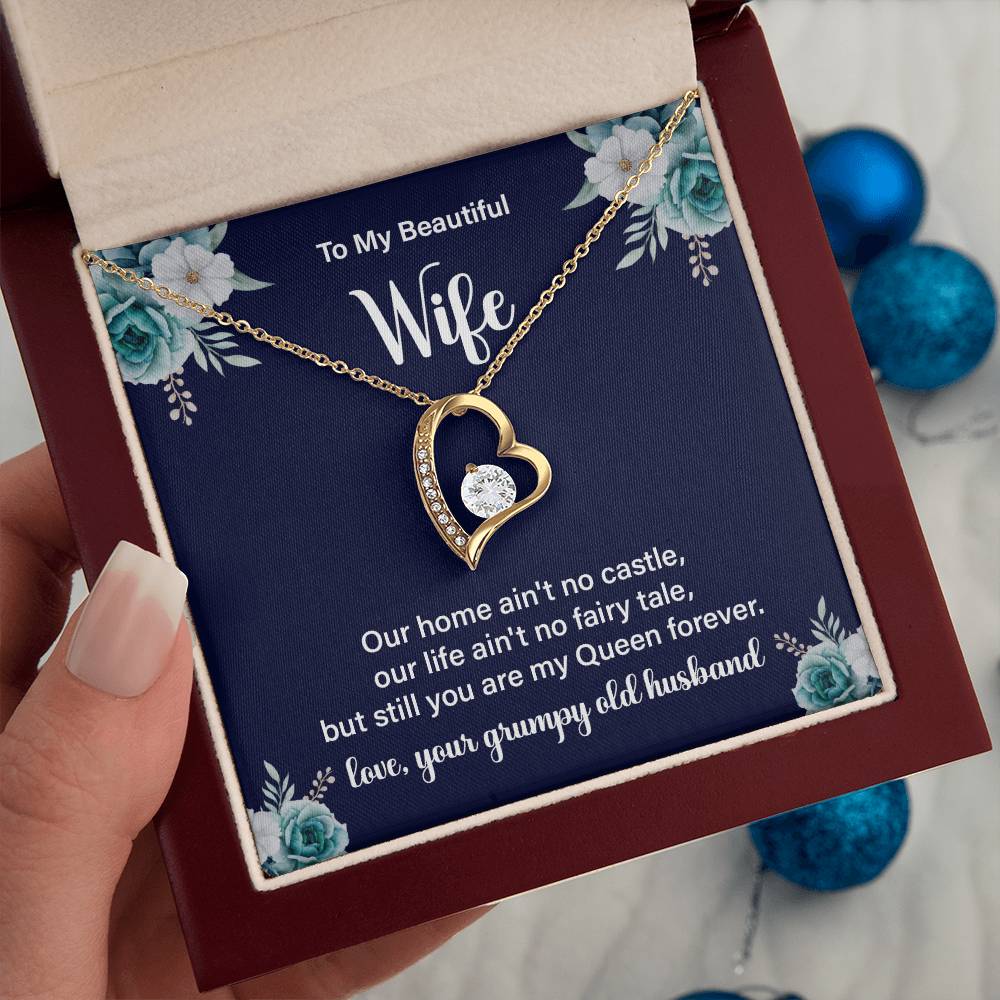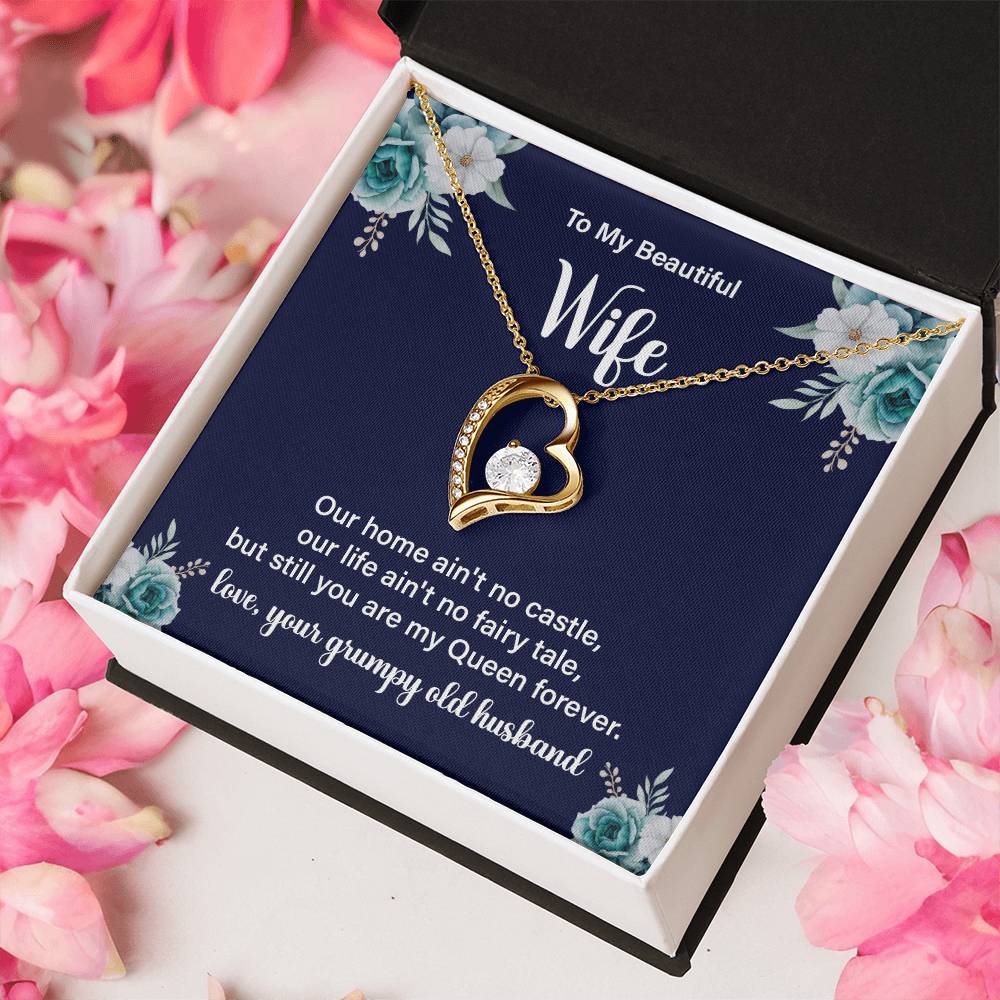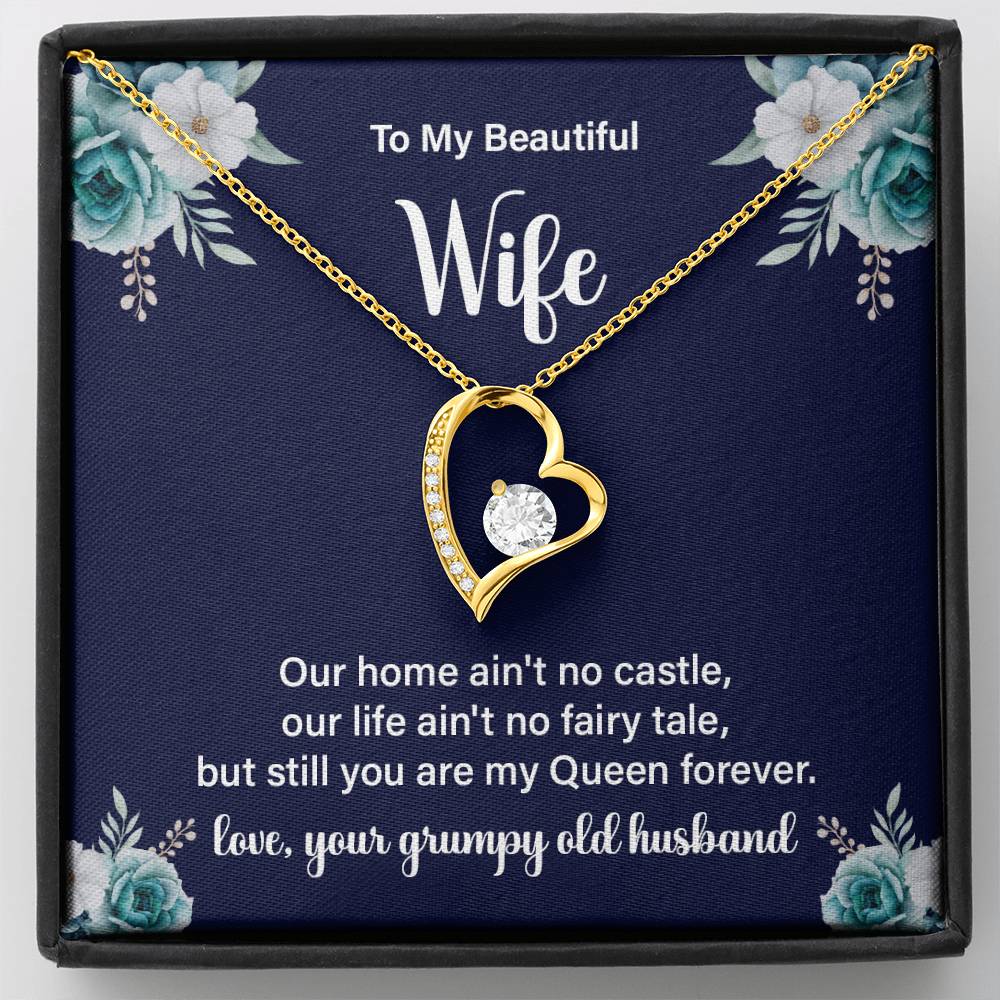 Give your wife a gift that is funny and touching. This significant presentation is accompanied by a humorous message card of a grumpy old husband, who reminds her that despite the lack of the fairy tale, she will still remain your queen forever. An ideal romantic memorabilia made of character and affection.