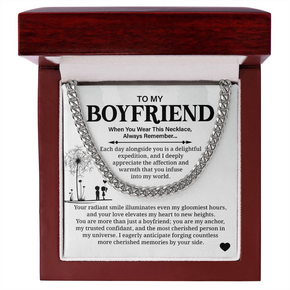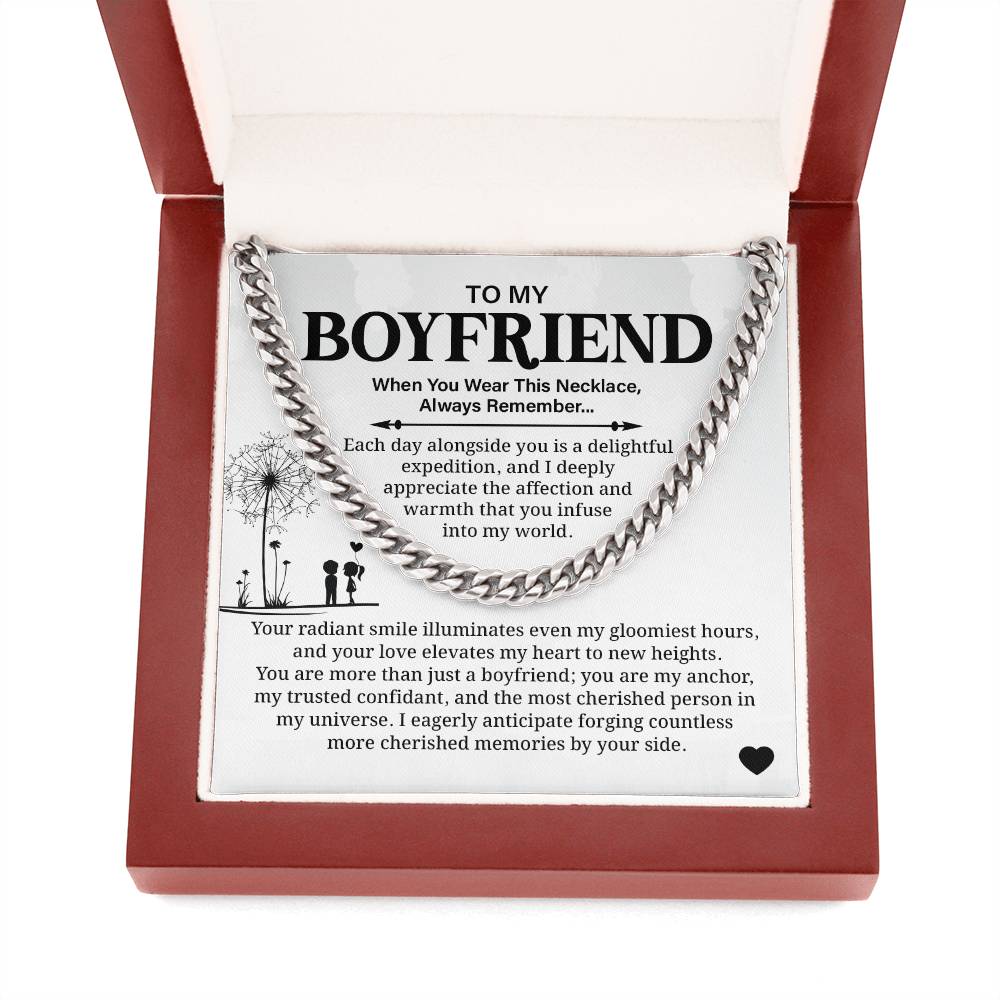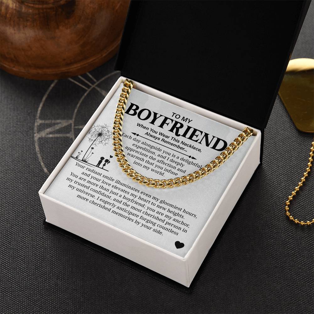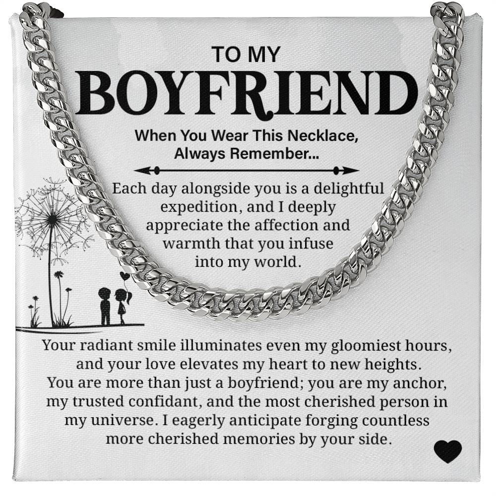 Searching the best way to say thanks to the man you love? This boyfriend appreciation necklace is a very emotional present that shows appreciation, love, and strong emotional attachment. The perfect boyfriend birthday presents, romantic anniversaries or simply because you want to tell him how much you care. This stainless steel Cuban chain is presented with a touching message card and gift box, and thus it is a memorable and permanent gift.