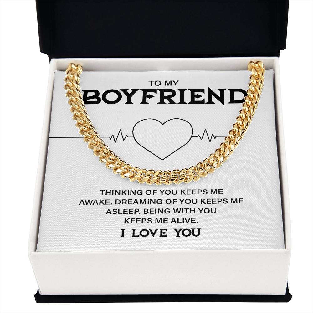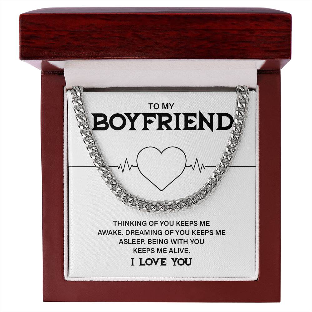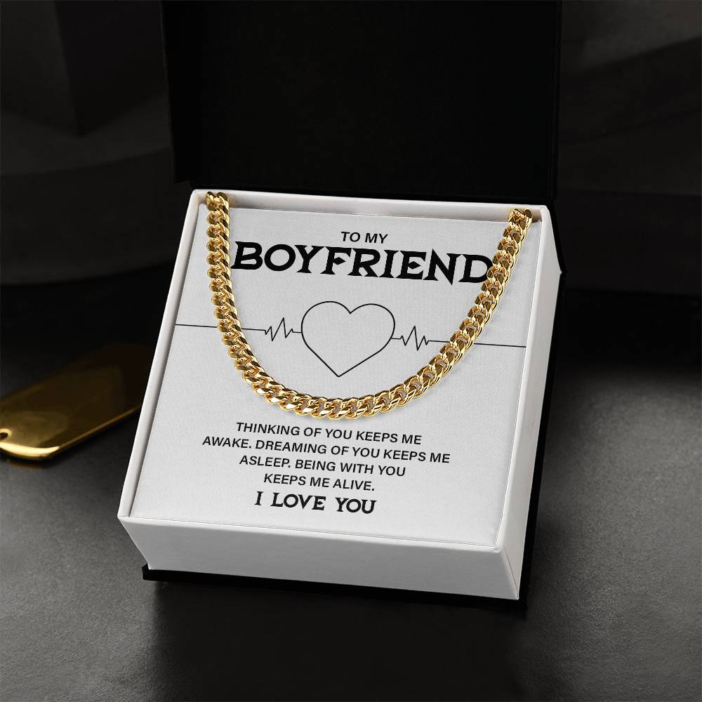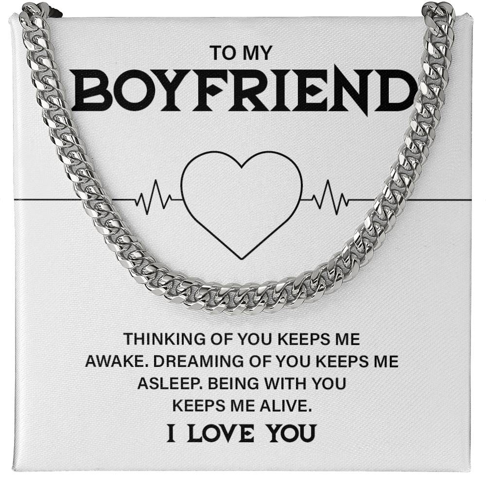 Give your boyfriend a special Cuban chain necklace that can express your love to him in the sweetest words possible. It is a nice boyfriend necklace with a heartbeat design, which is ideal as a romantic gift to a boyfriend, a sweet gift to give your boyfriend on your anniversary, or a sentimental Valentine day gift. This jewelry is made to be melted to the heart and it is perfect to be given out to show great love, care and emotional attachment on any special day.