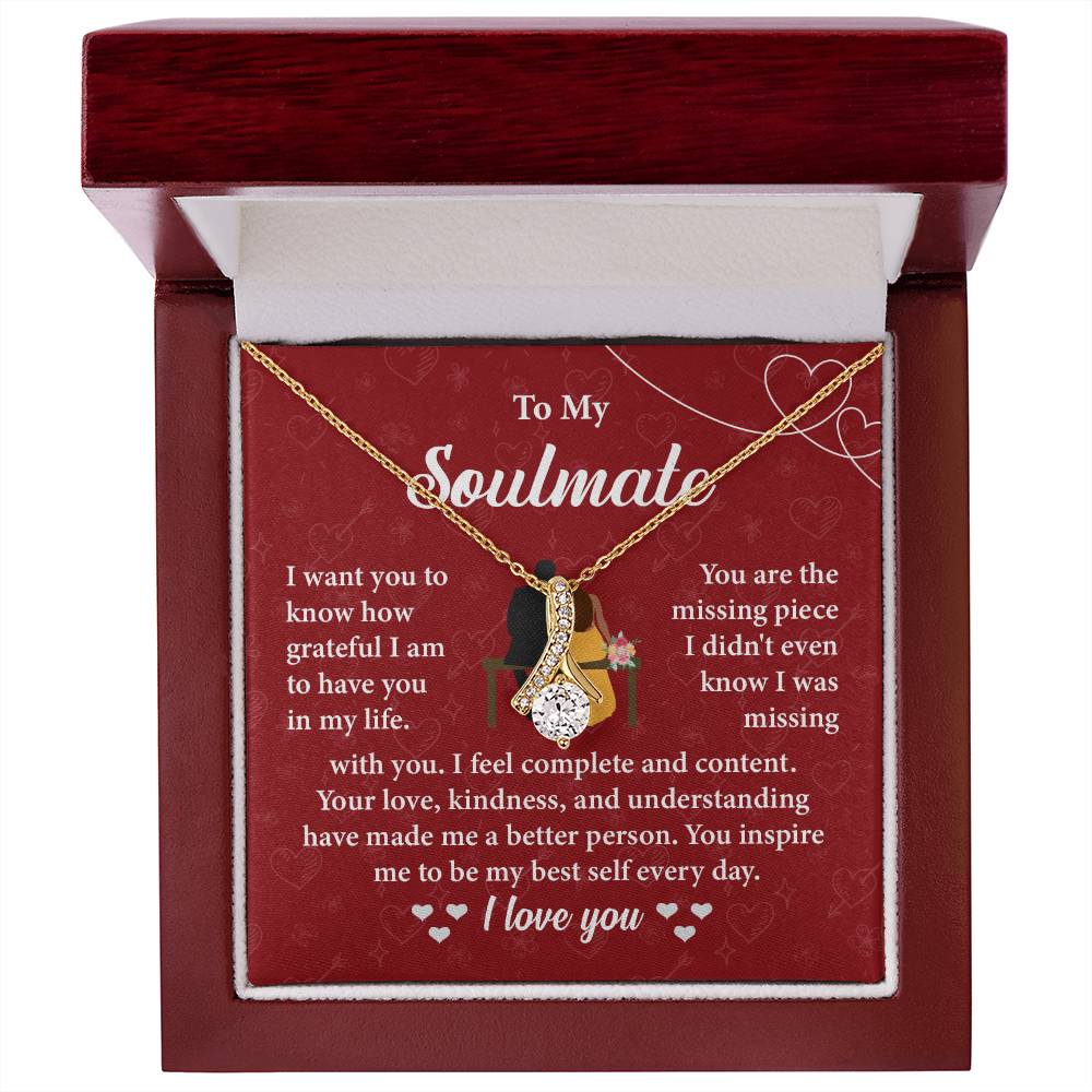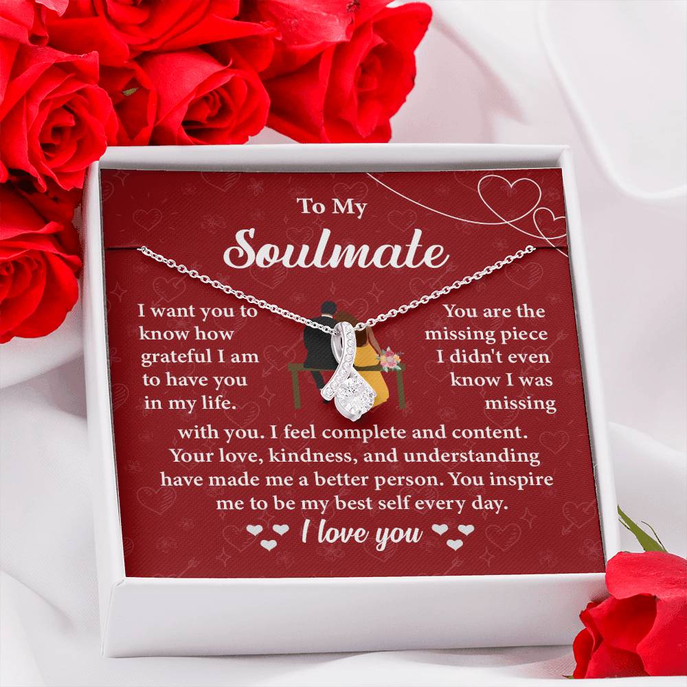 This is the perfect gift to her, be it your girlfriend, wife or life partner, this soulmate necklace is the best. It is a romantic piece of jewelry that is ideal to give on Valentine Day, anniversaries or birthdays and it is a reminder of your love. It is a full gift, and the meaningful message card and luxury packaging will make her keep it forever.