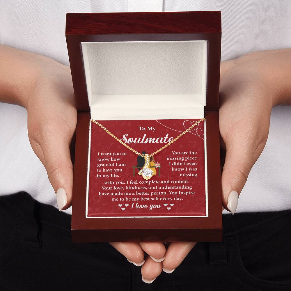 Seeking a special necklace gift to your soul mate? This love necklace to her is the best option to show love and appreciation. It is a memorable gift to your girlfriend, wife, or partner on Valentine Day, anniversary, birthday, or any other romantic day with a moving message card and a beautiful gift box.