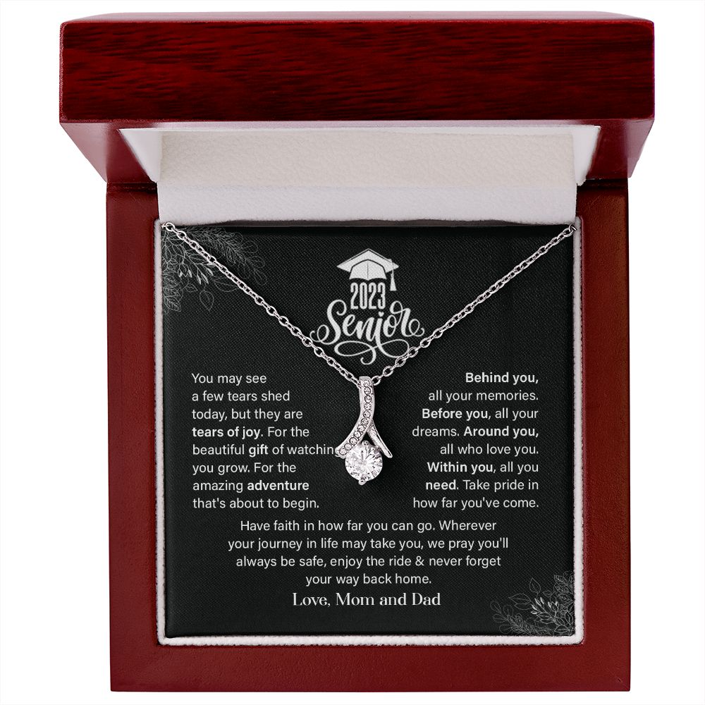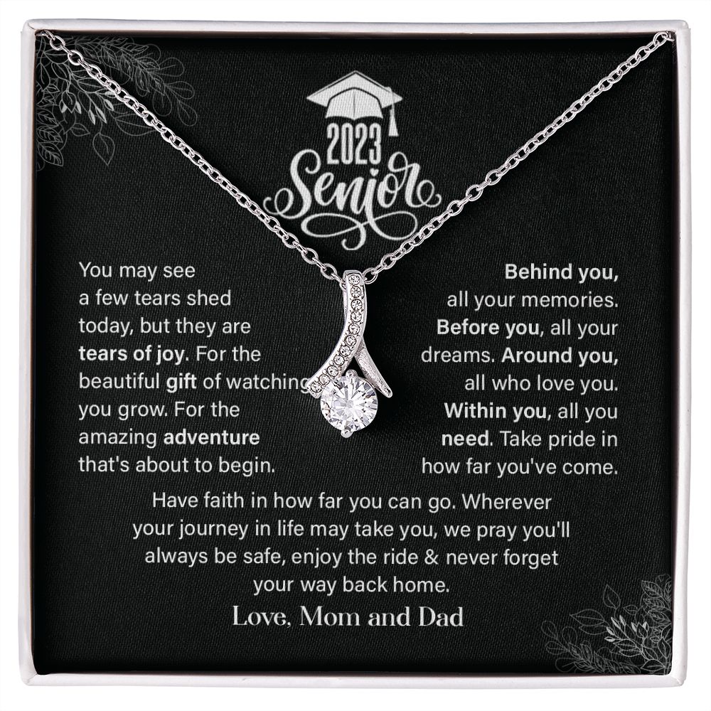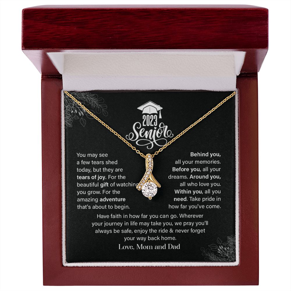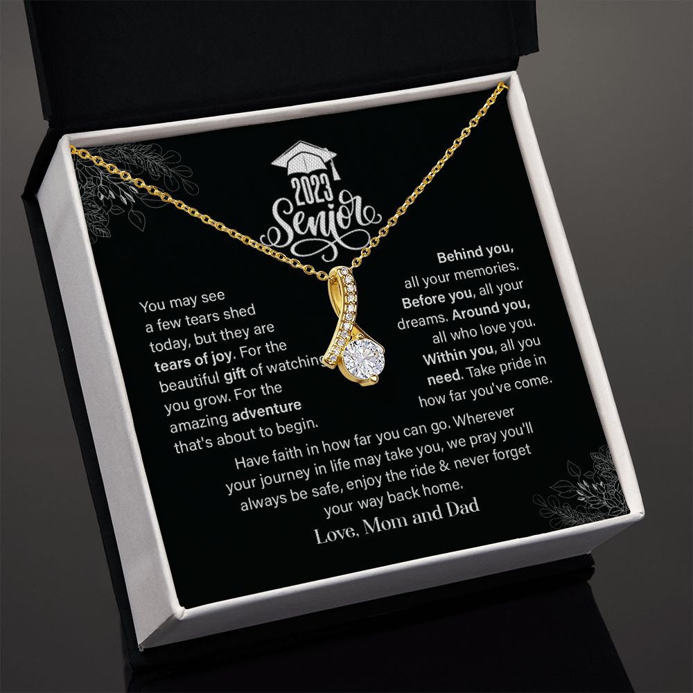 Imagine her reaction when she opens this stunning gift! The Alluring Beauty necklace features a petite ribbon shaped pendant that is sure to dazzle your special someone. Whether it's a birthday or anniversary, make sure to get her a gift she will love for years to come.