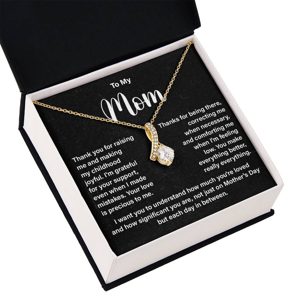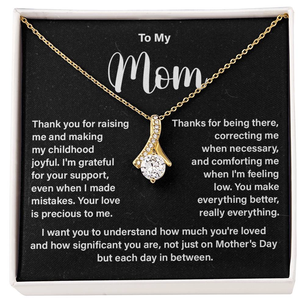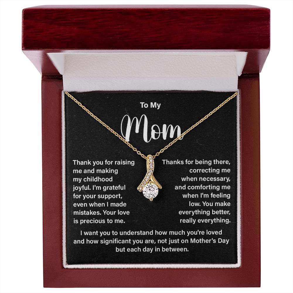 This is not only a mother necklace gift with a message card—it’s a way for your love to last over time. A thoughtful necklace can be given to mom on her birthday, Mother’s Day or just to say thank you and it will remind her every day how much she is loved.