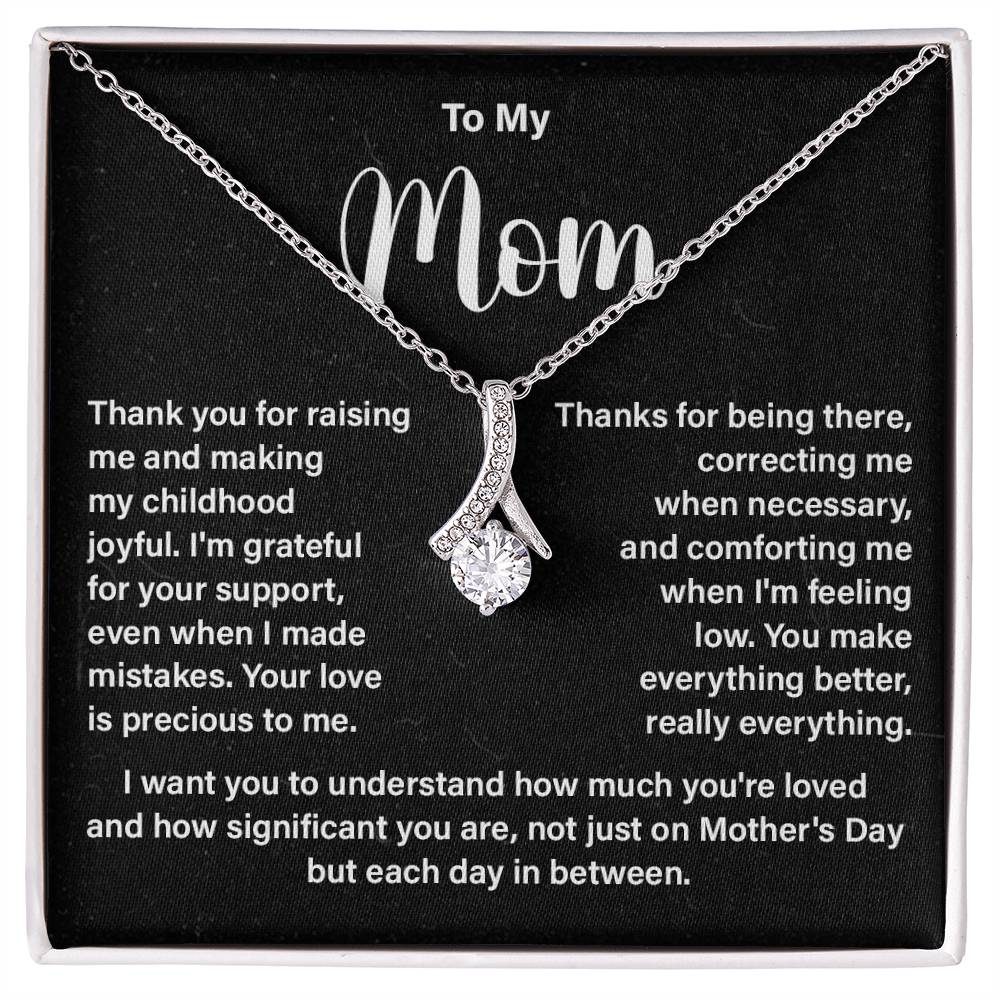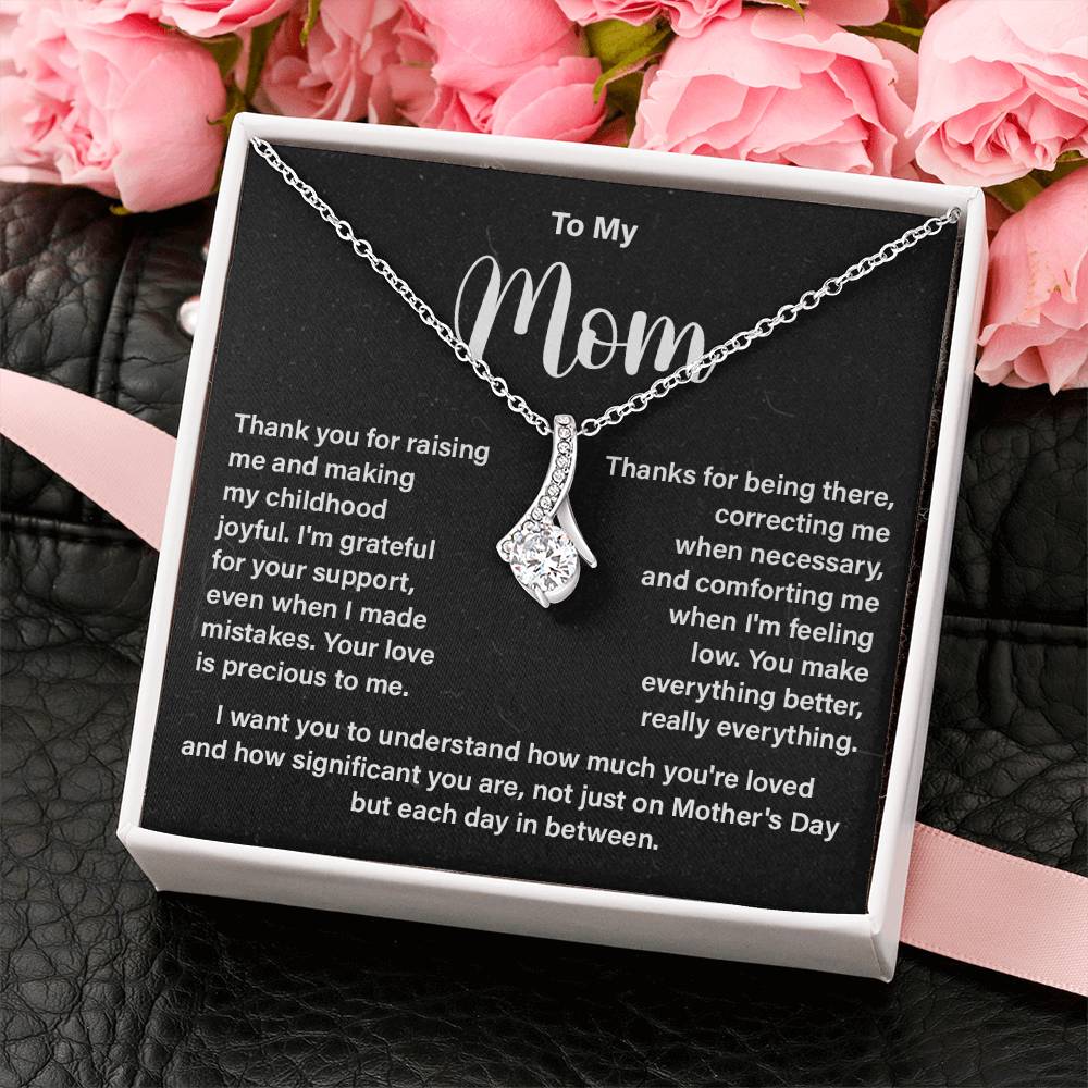 Give your mom a necklace from daughter or son that she will cherish for years. If you’re looking for a present for Mother’s Day, a birthday or any other special day, this piece with a lovely message card is a perfect way to tell mom how much you care.