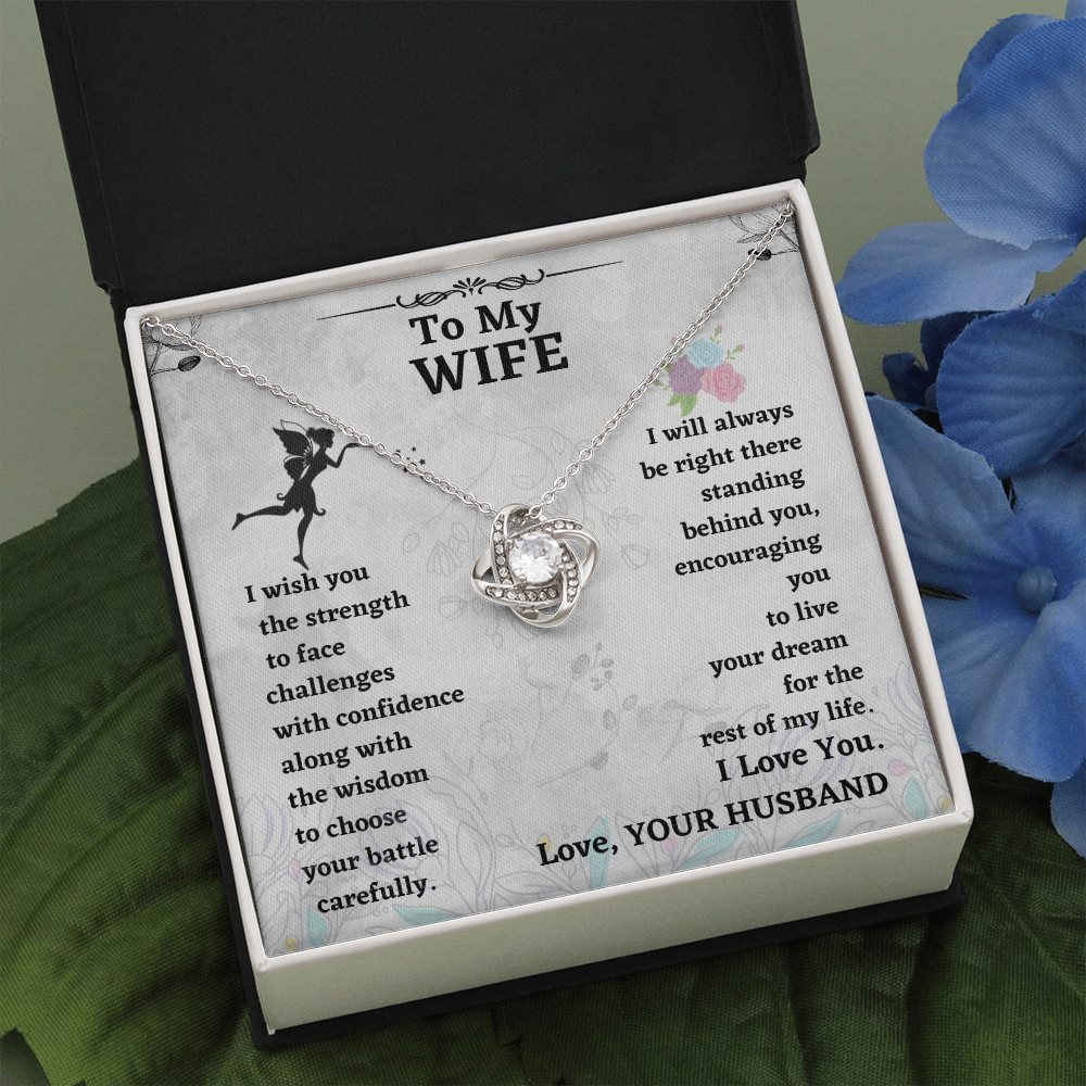 Wife Necklace Gift from Husband – Love Knot Pendant with Encouragement Message Card