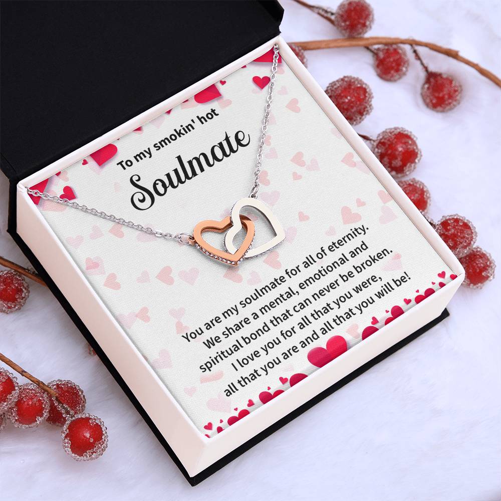This interlocking hearts necklace is a flirty and heartfelt gift that you can give your soulmate. This love jewelry item is the best selection when you want to gift your girlfriend on valentines day, anniversary necklace to your wife or love gift to your soulmate women. It is created to commemorate your spiritual, emotional, and deep connection, and it is the ideal present to the lady who makes your heart beat faster. Comes with an emotional message card and a high-end gift box.
