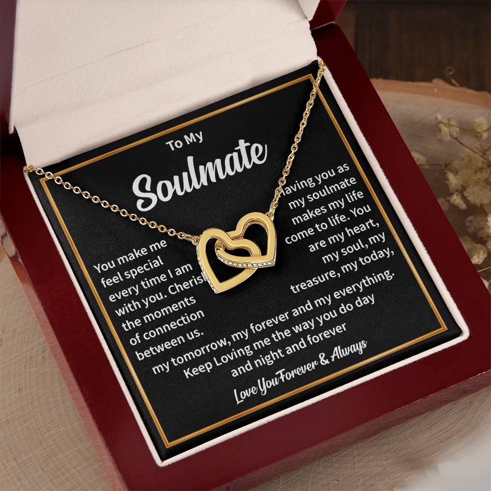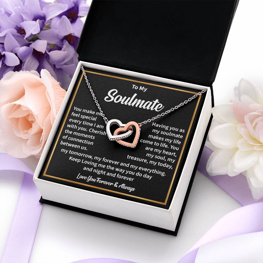 Soulmate Hearts Necklace with Message Card & Gift Box