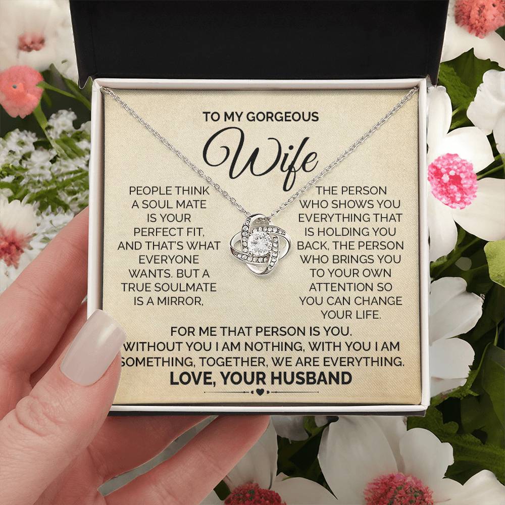 This beautiful necklace is an affectionate present from husband to wife, commemorating the real essence of soulmates. Ideal for anniversaries, birthdays, or any reason at all, it comes with a warm message that celebrates your profound connection.