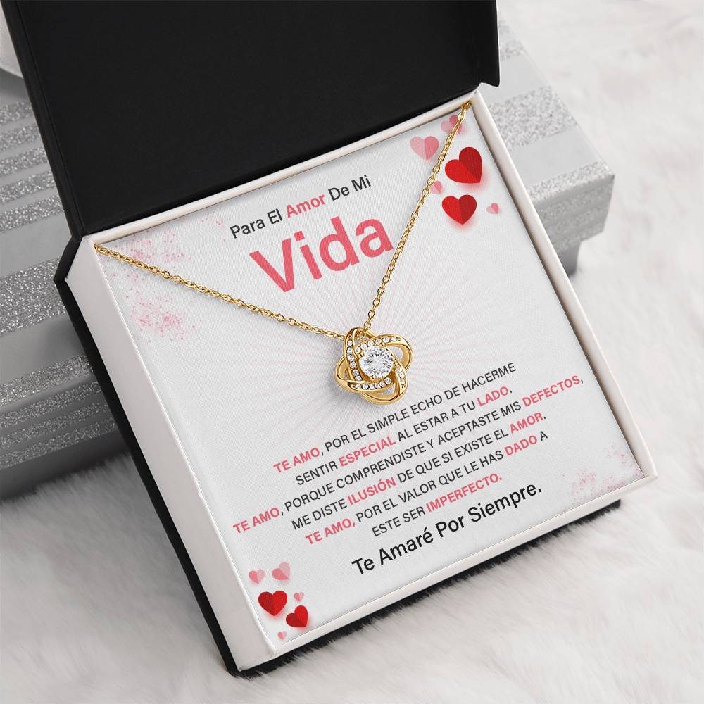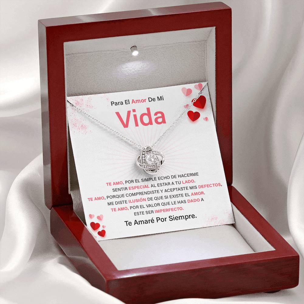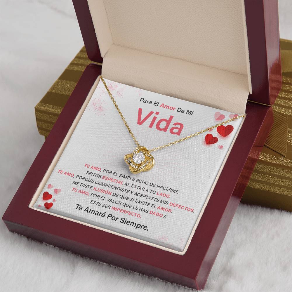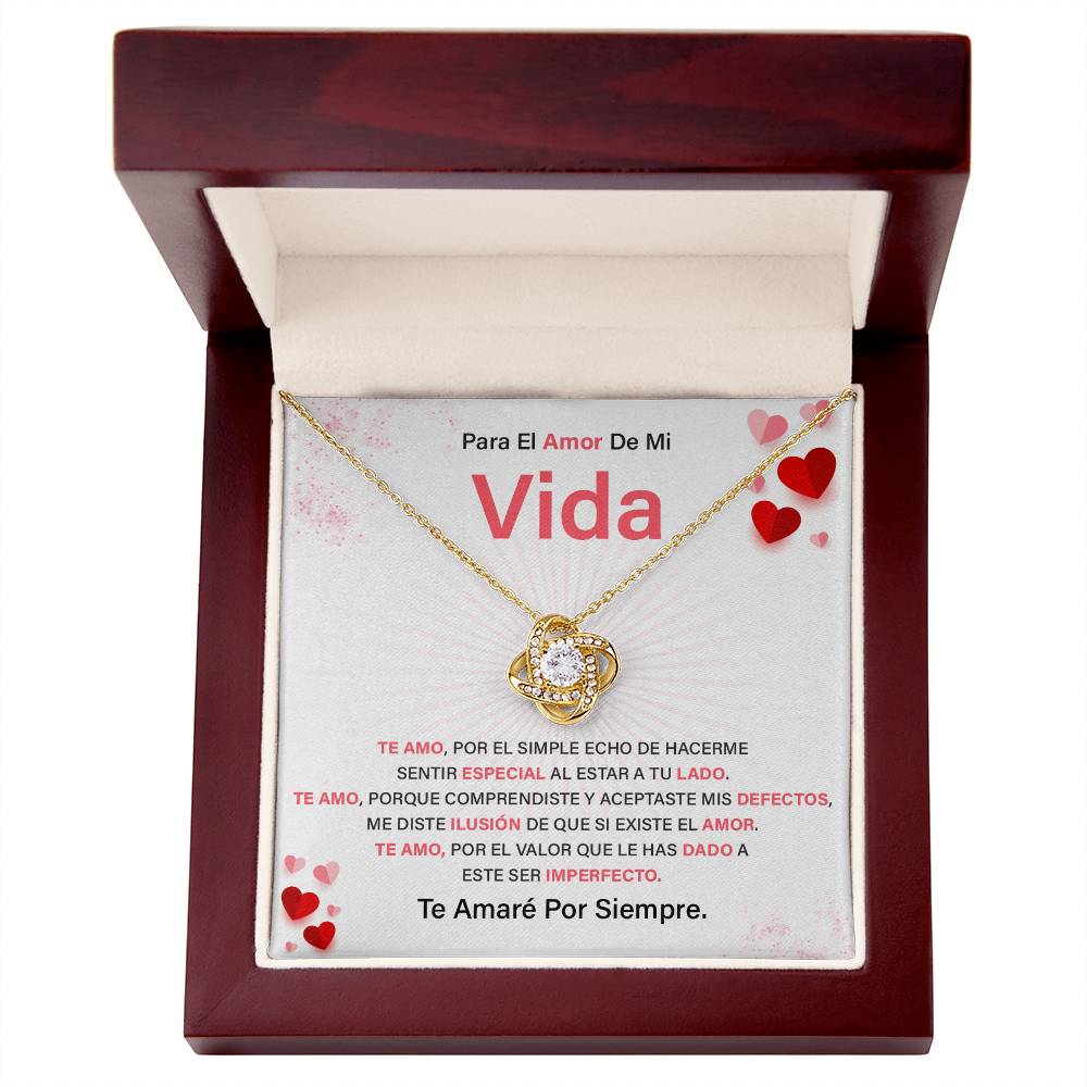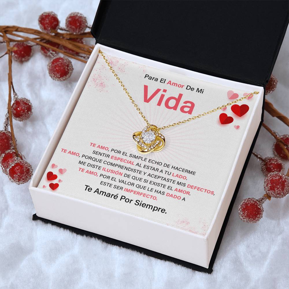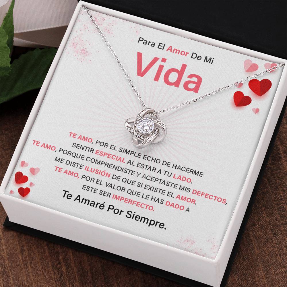 Celebrate your love with this lovely Spanish Love Knot Necklace for your girlfriend or wife. This jewelry is perfect for giving your heartfelt message in Spanish to your partner, be they your soulmate, wife or girlfriend. A wonderful choice for Valentine’s Day, birthdays, anniversaries or to tell someone you love them.