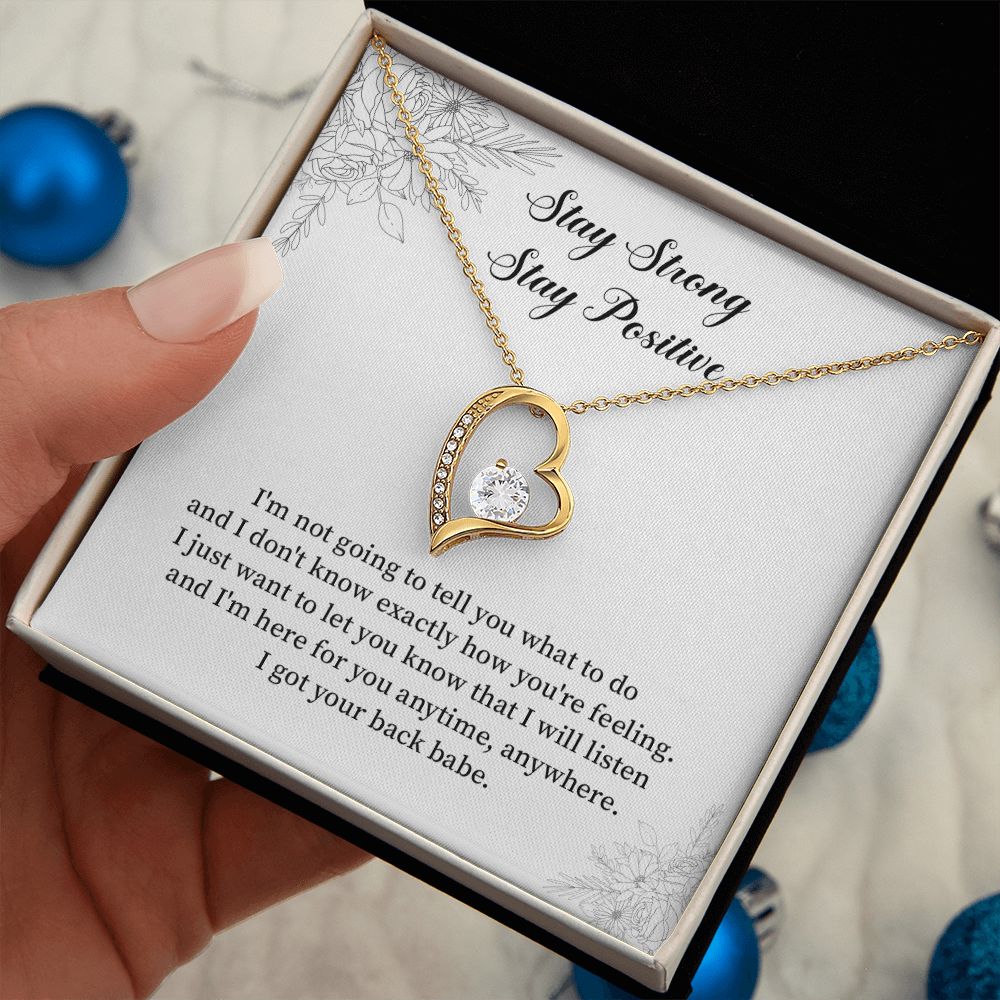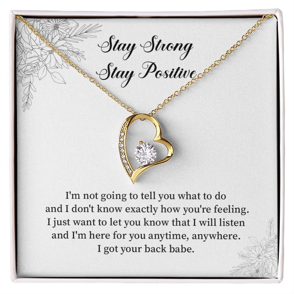 The dazzling Forever Love Necklace is sure to make her heart melt! This necklace features a stunning 6.5mm CZ crystal surrounded by a polished heart pendant embellished with smaller crystals to add extra sparkle and shine. Beautifully crafted with either a white gold or yellow gold finish, be sure to give her a classic gift she can enjoy everyday.