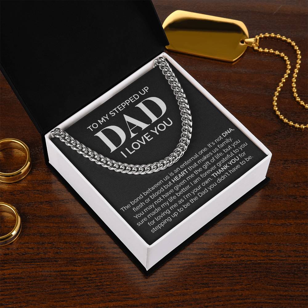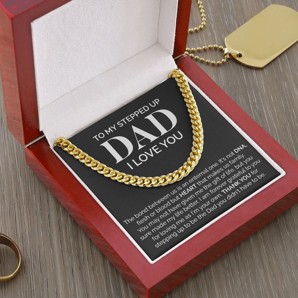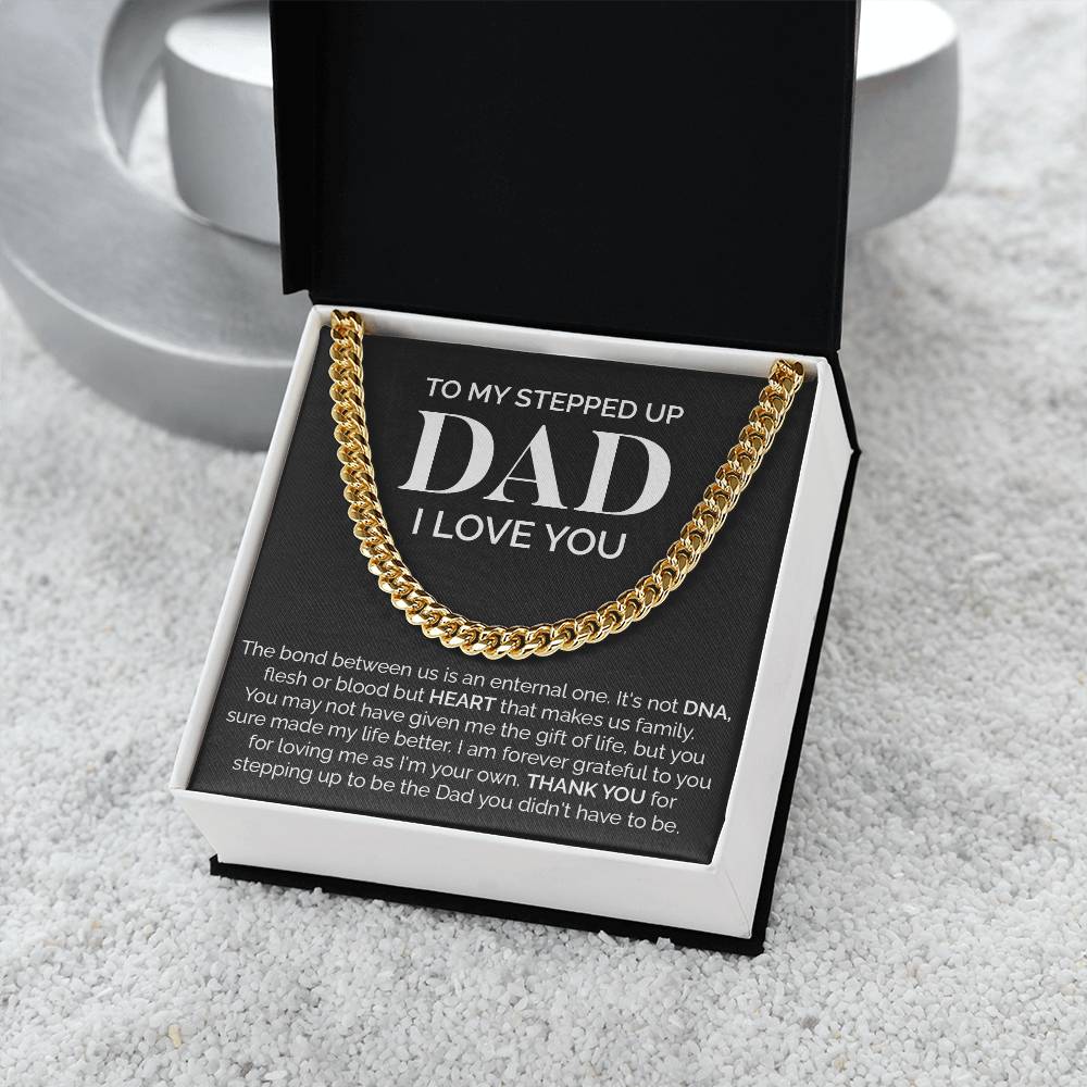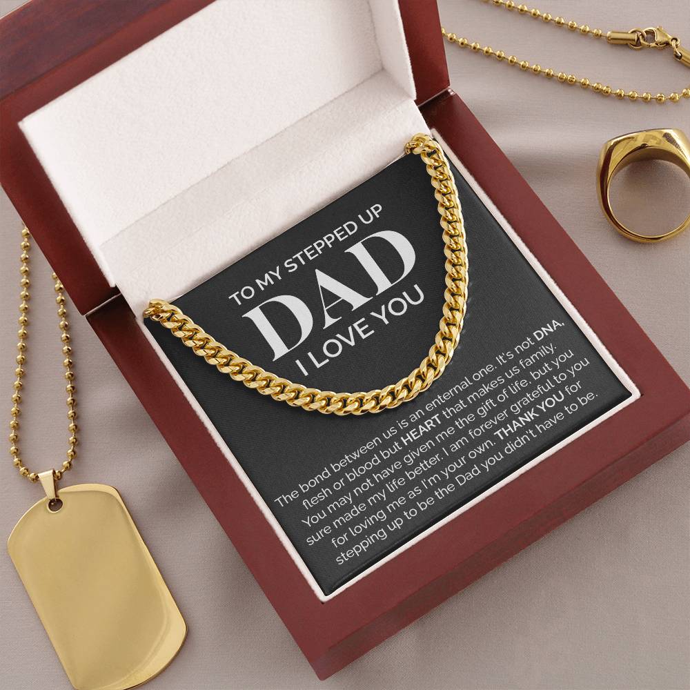 Stepped Up Dad Cuban Link Chain Gift – Bonus Dad Necklace