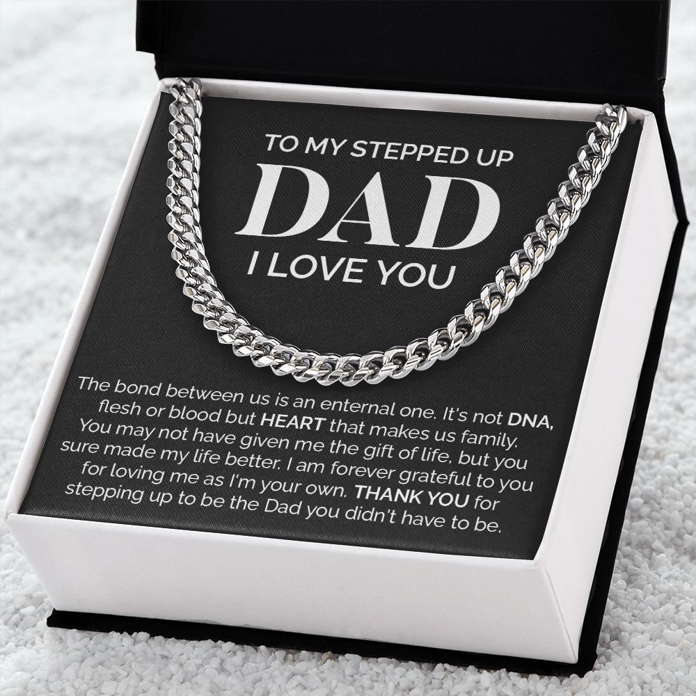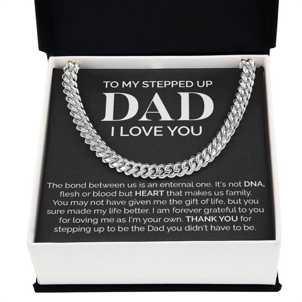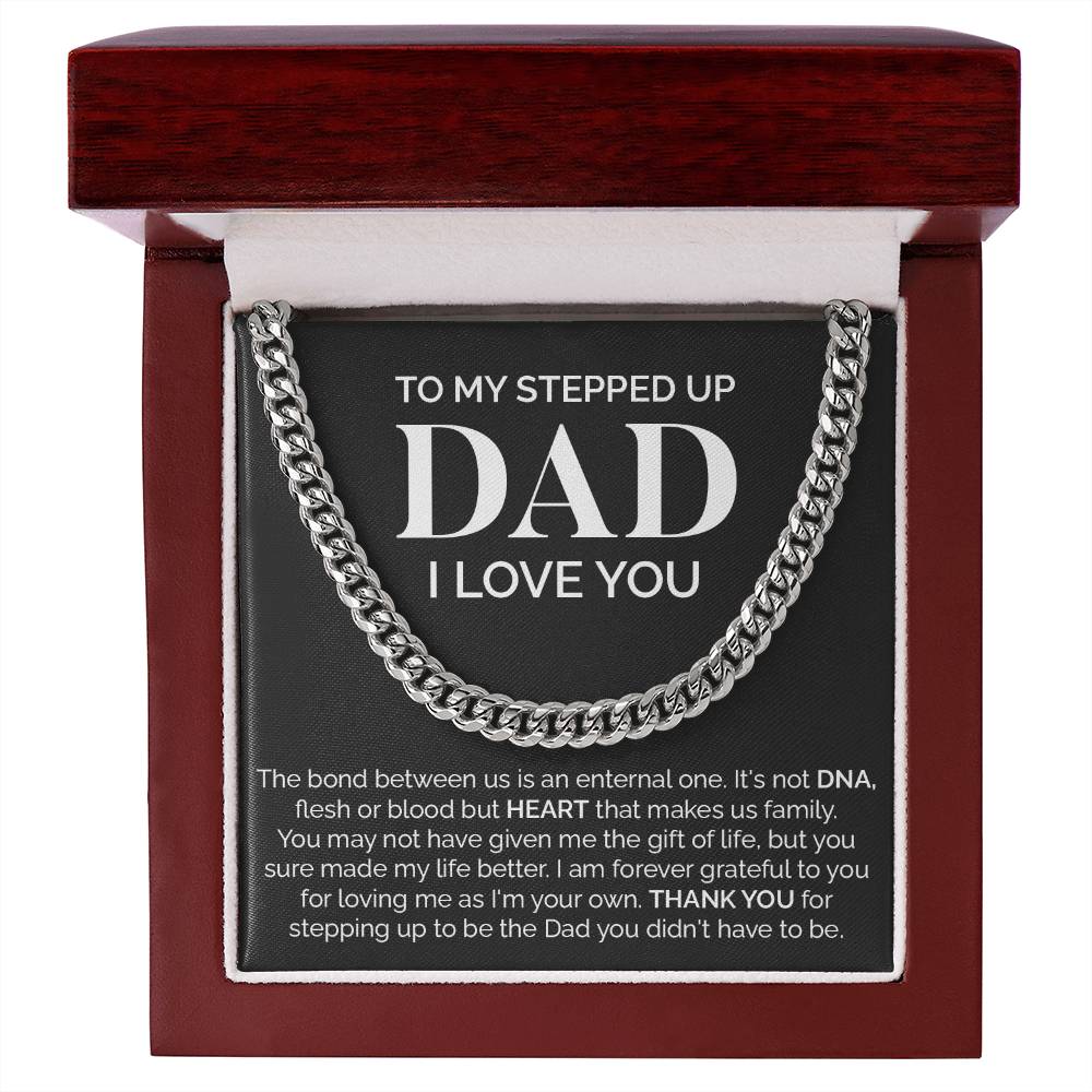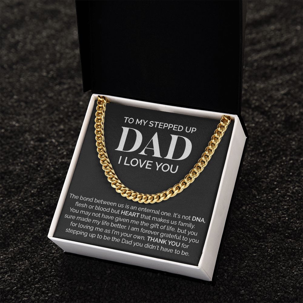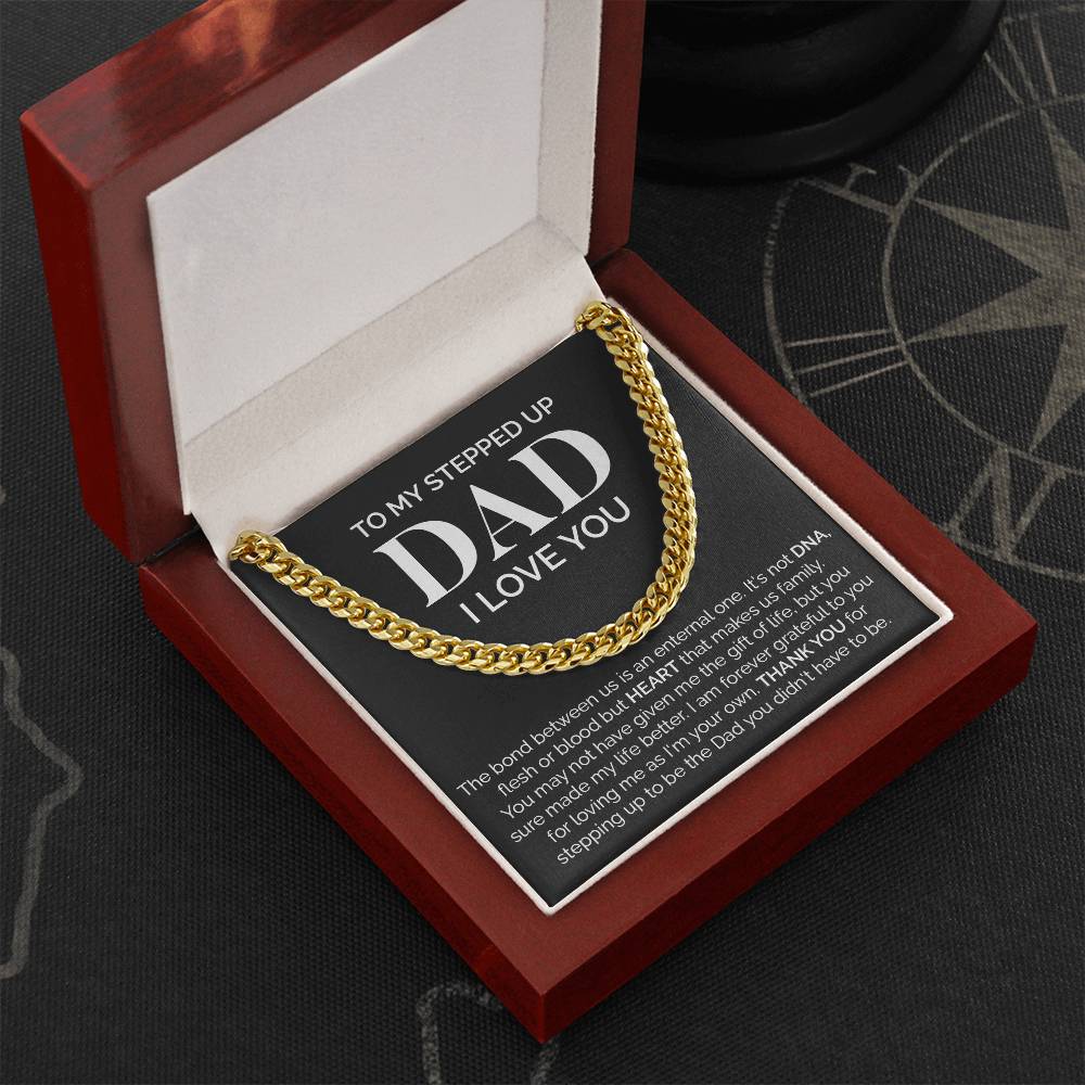 Stepped Up Dad Cuban Link Chain Gift – Bonus Dad Necklace