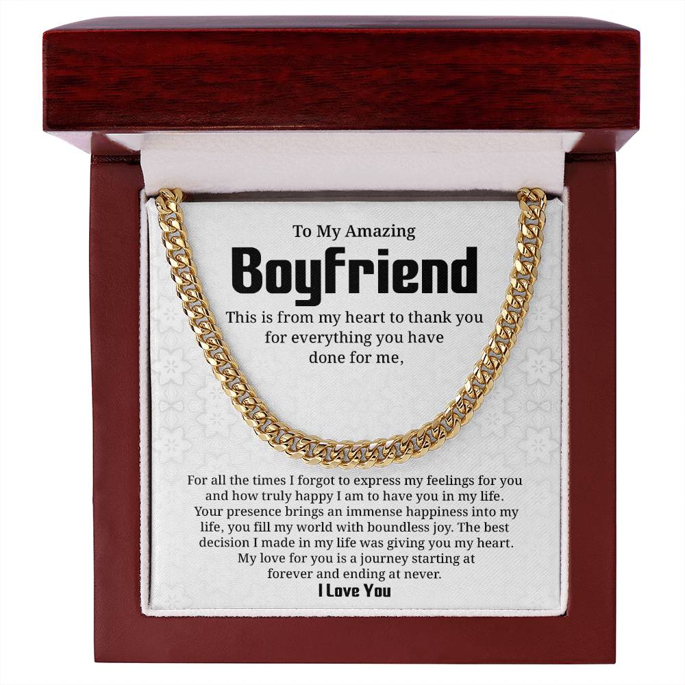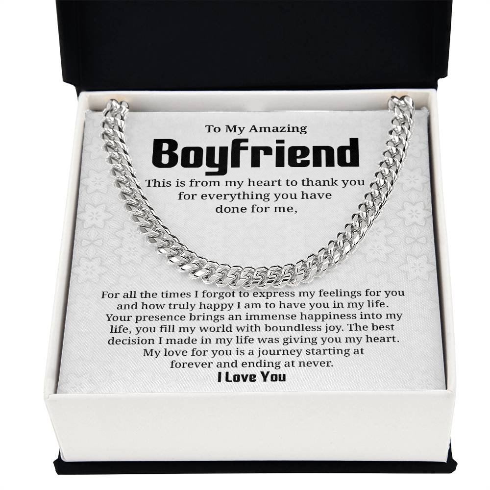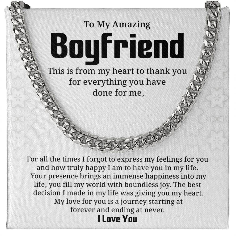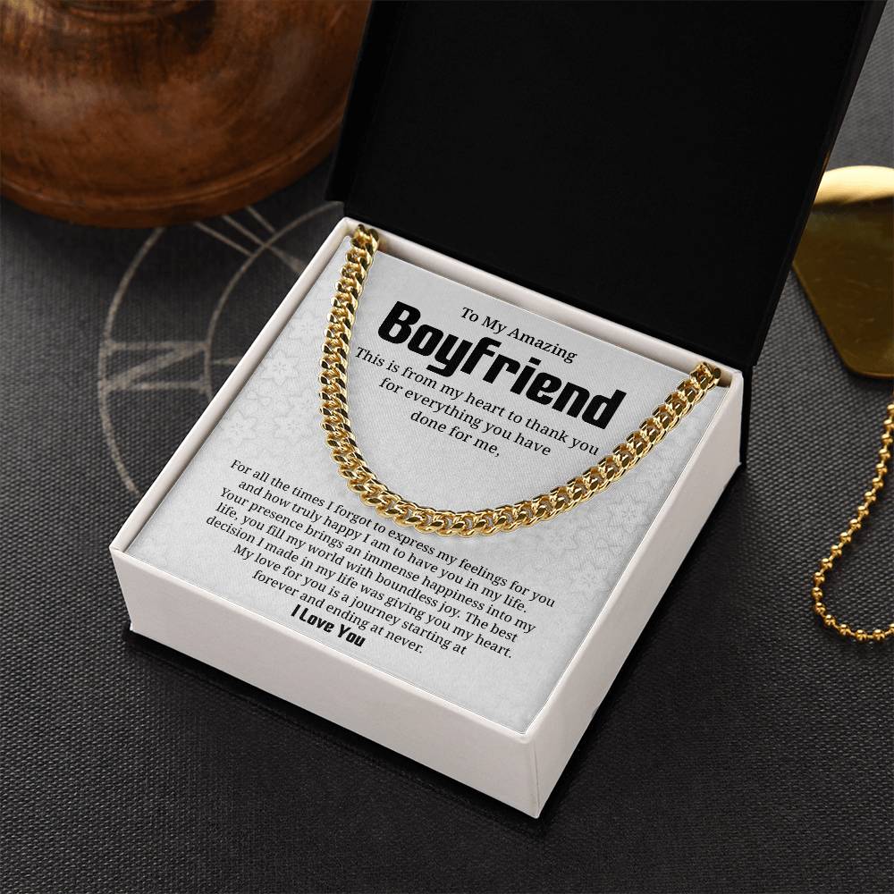 Want to find the best deployment gift to your military boyfriend? This is a Cuban chain necklace with a touching message card, which is a perfect military relationship gift to a long-distance love. This necklace is a way to honor his service whether he is in the army, navy, air force, or marines and keeps your love close. An excellent gift on anniversaries, birthdays, Valentine Day or simply because you miss him.