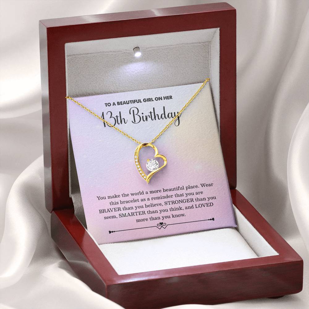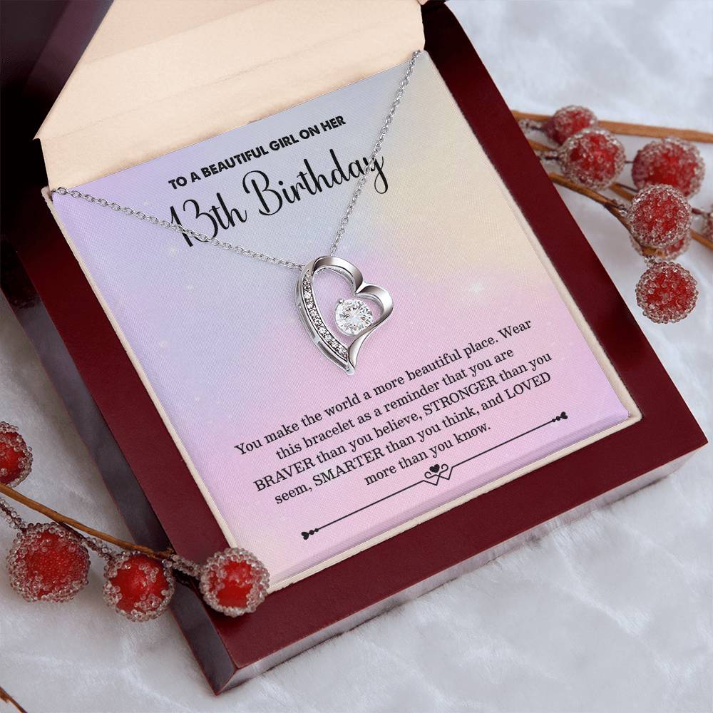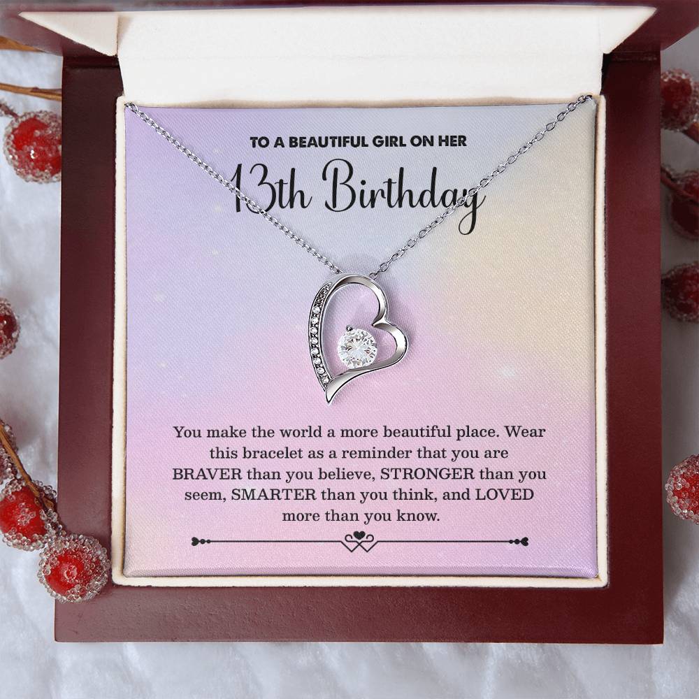 13th Birthday Necklace for Girl – Heart Pendant with Pastel Message Card