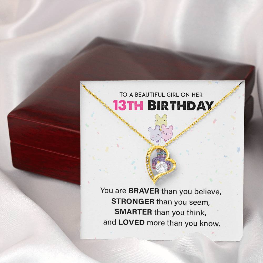 13th Birthday Necklace for Girl – Heart Pendant & Inspiring Card