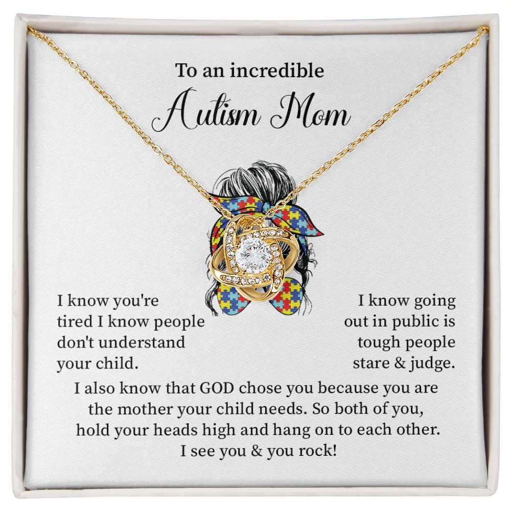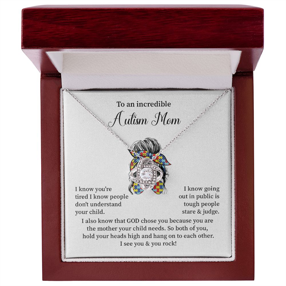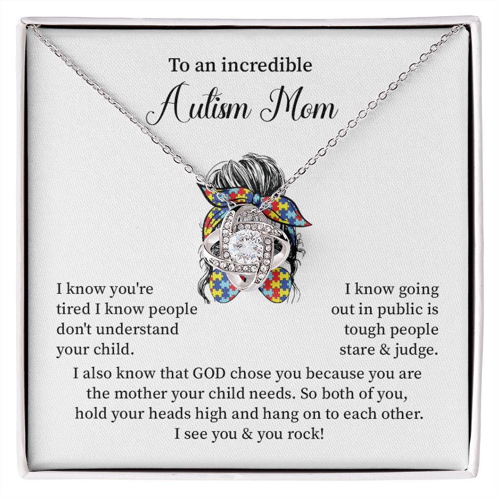 To an Incredible Autism Mom, I know You're Tired, Love Knot Necklace Gifts Her On Autism Awareness Day From Son/Daughter