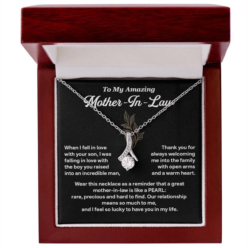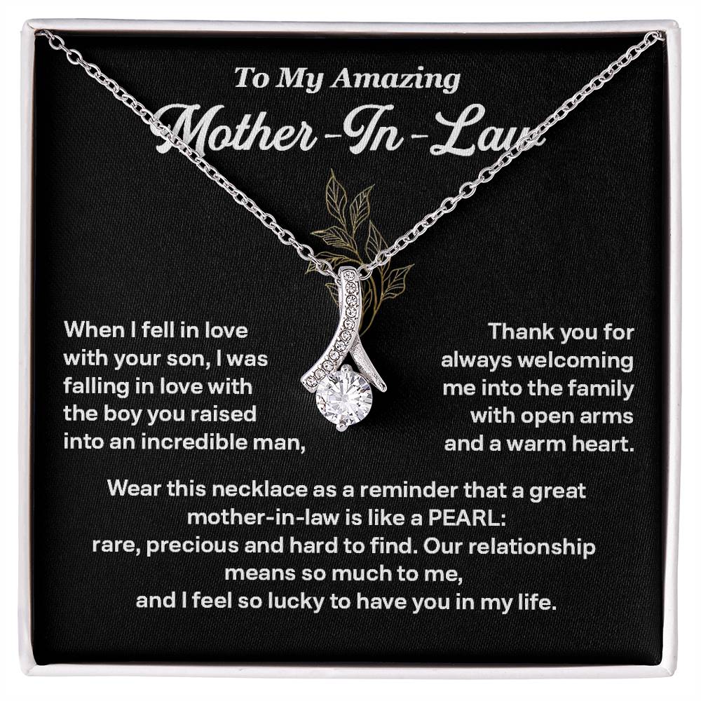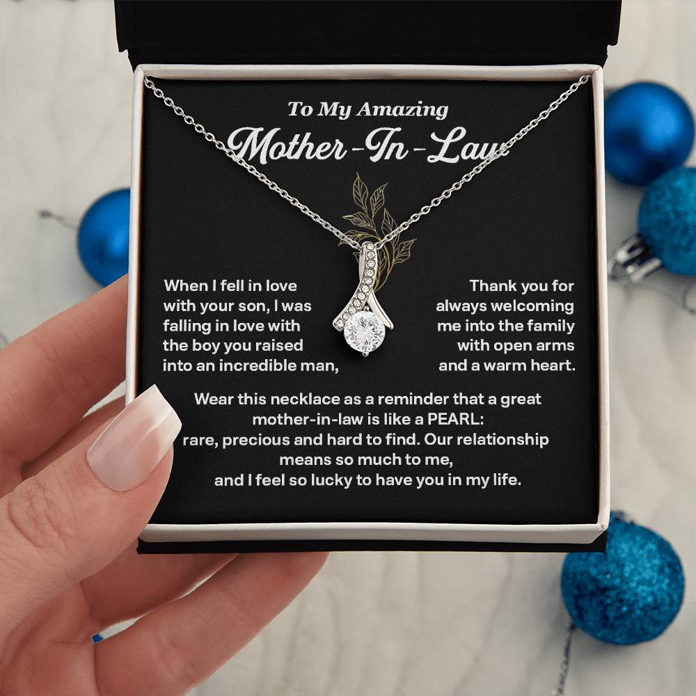 Wear this necklace as a reminder that a great mother-in-law is like a PEARL: rare, precious, and hard to find.