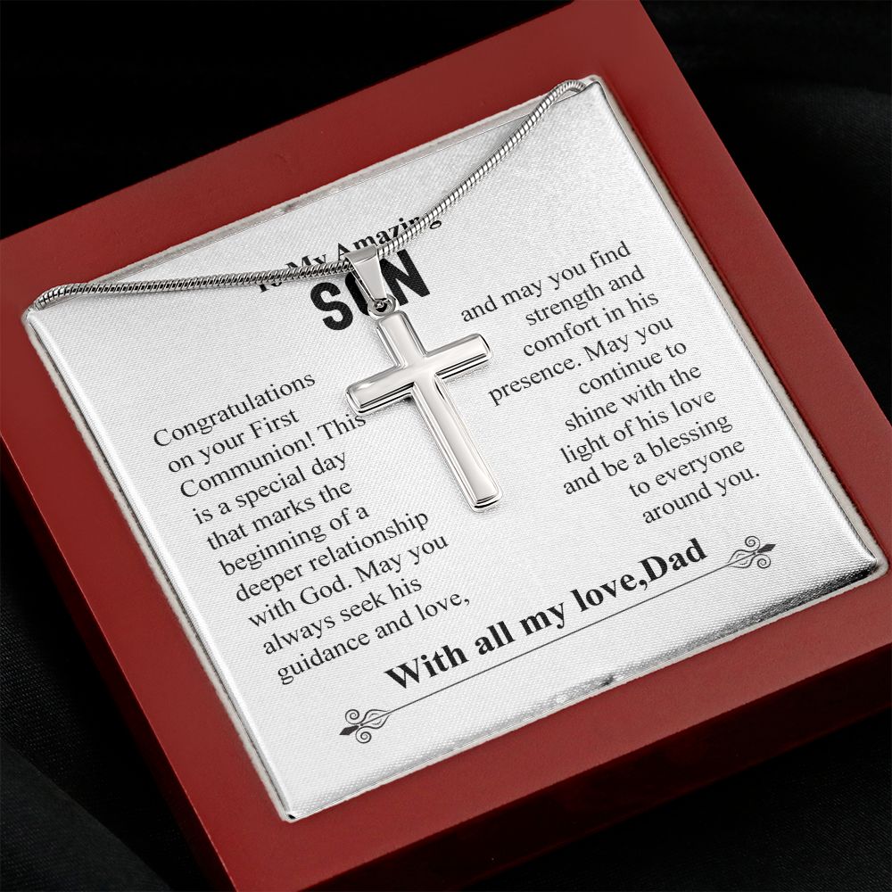 To My Amazing Son Cross Necklace With All My Love Dad - Congratulations On Your First Communion
