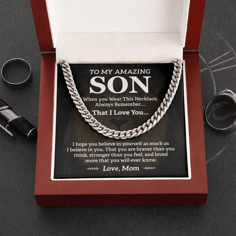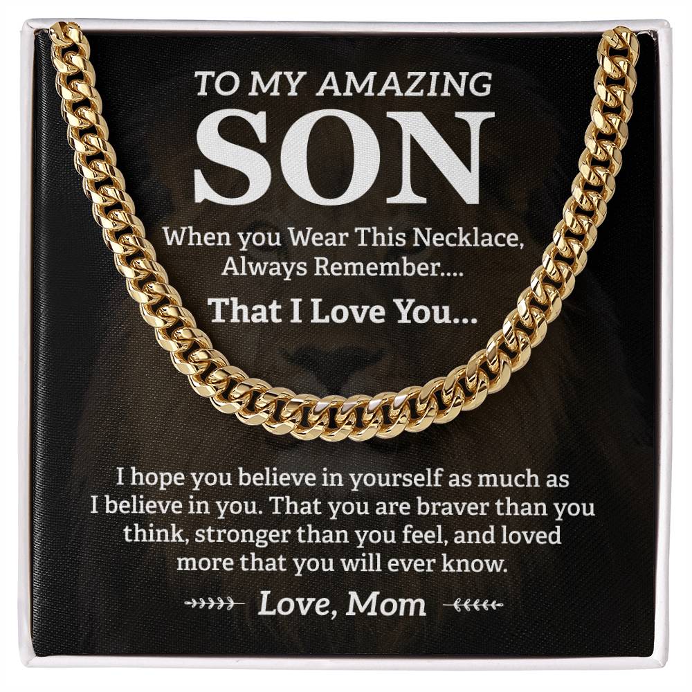 Cuban Link Necklace Gift for Son from Mom – Always Remember I Love You