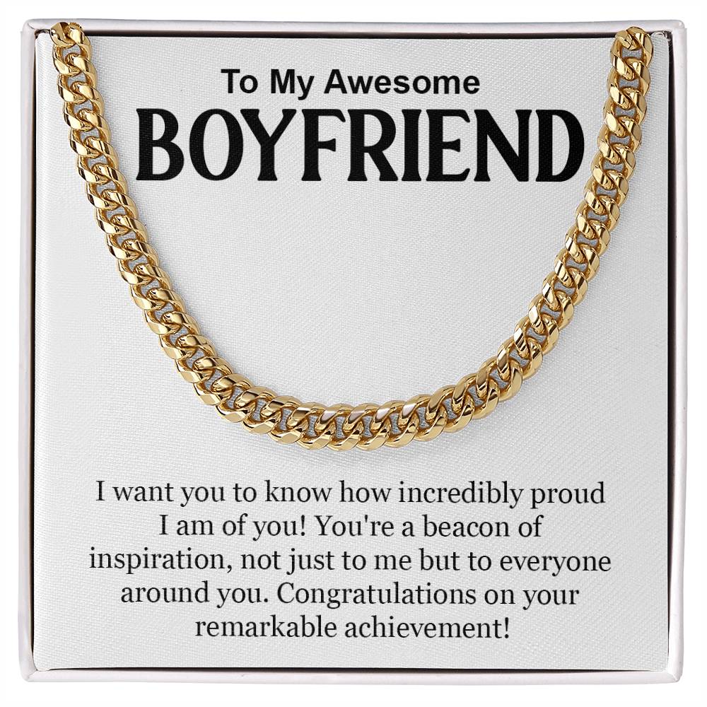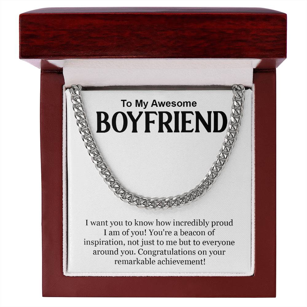 Give your boyfriend a Cuban chain necklace to celebrate his great achievement. You can give this gift on graduation, promotion or any important day—it shows strength and pride. An excellent present for any boyfriend’s graduation or to show encouragement from a loving partner.