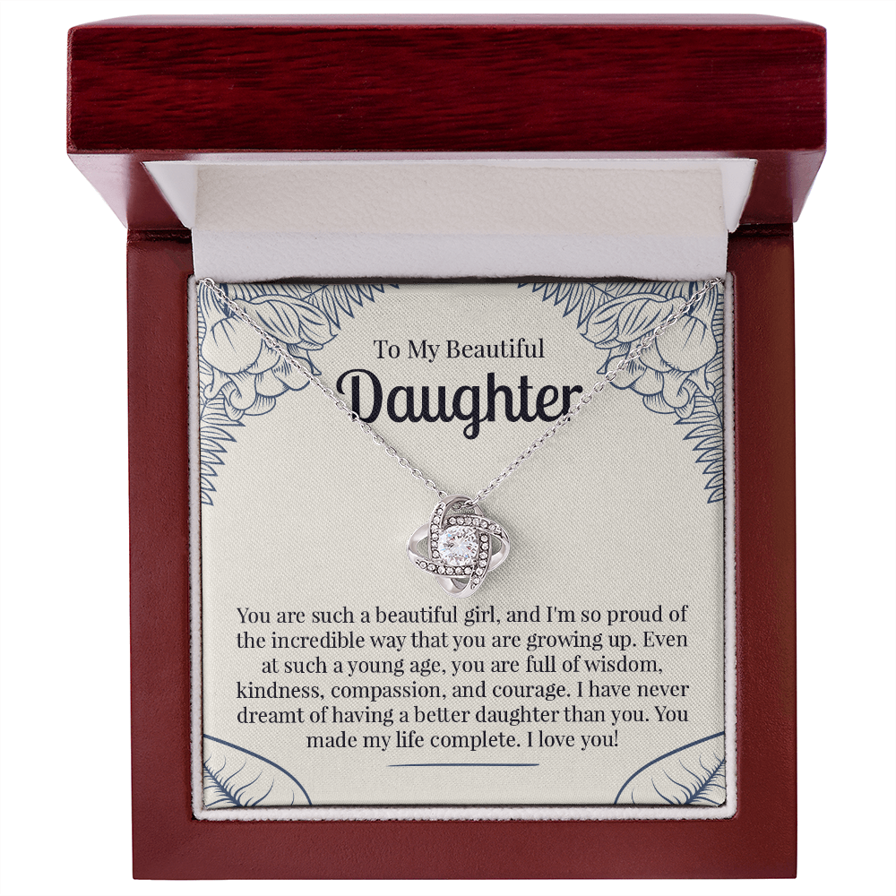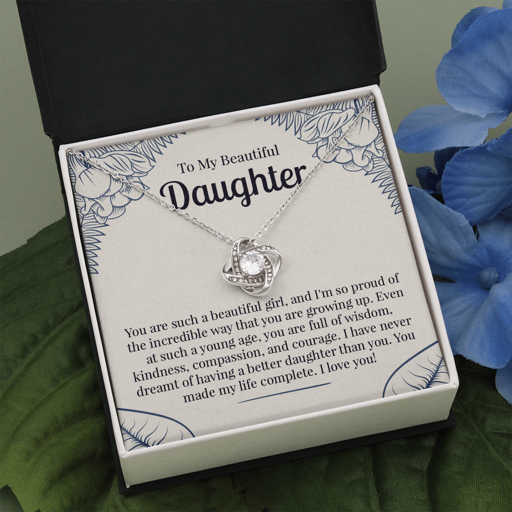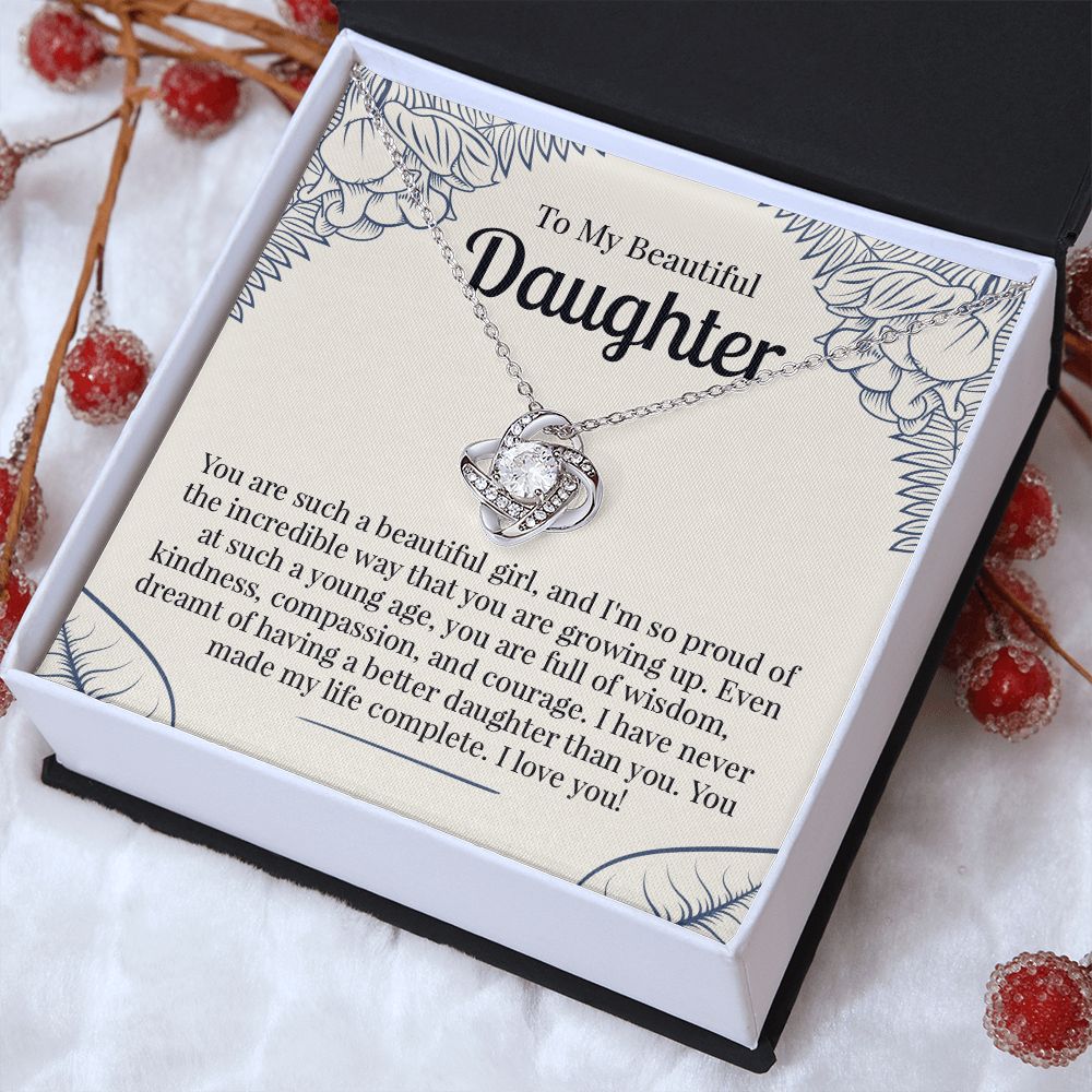 To My Beautiful Daughter Necklace Gift – Love Knot Pendant with Heartfelt Message Card
