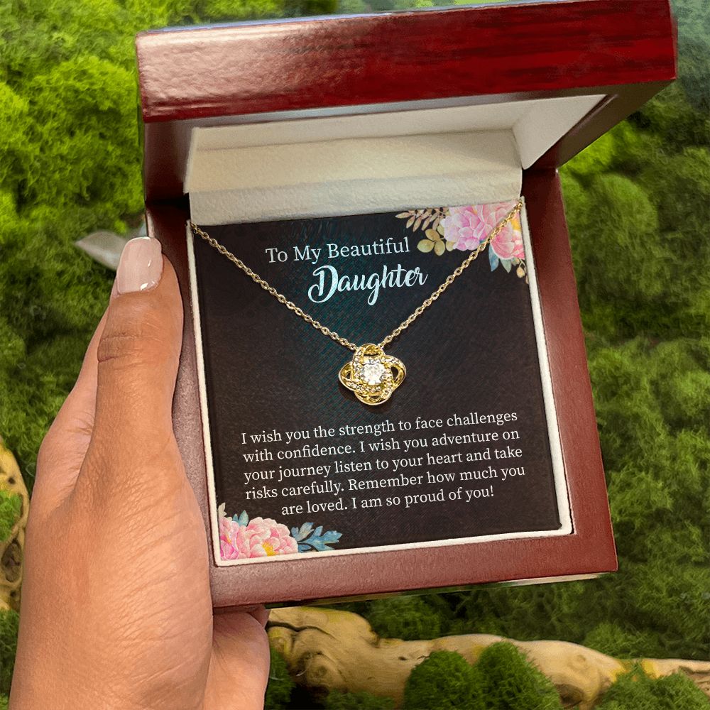 Encourage your daughter’s journey through life with this elegant Love Knot Necklace and heartfelt message: