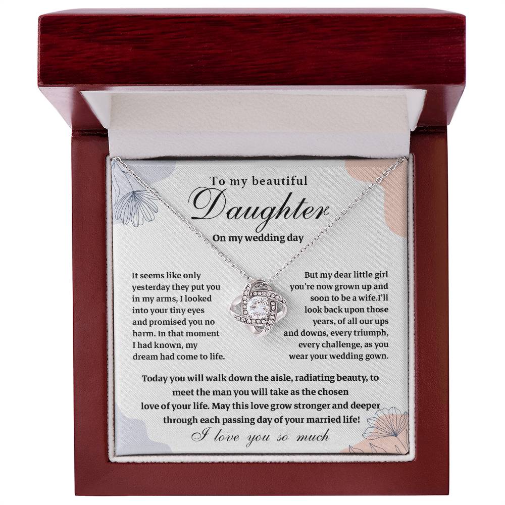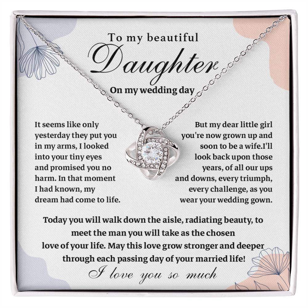 Mark the most memorable day in the life of your daughter with a touching wedding day present. This beautiful necklace has a heart-warming message card enclosed by mom, which contains all the valuable memories since childhood to bridehood. An ideal gift to the lovely bride to be.