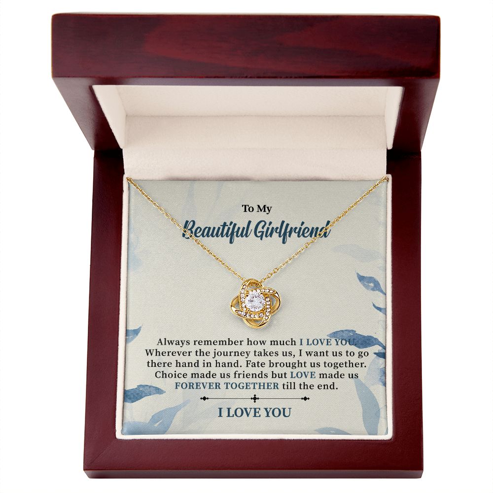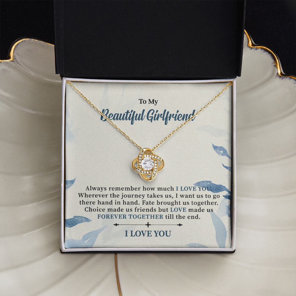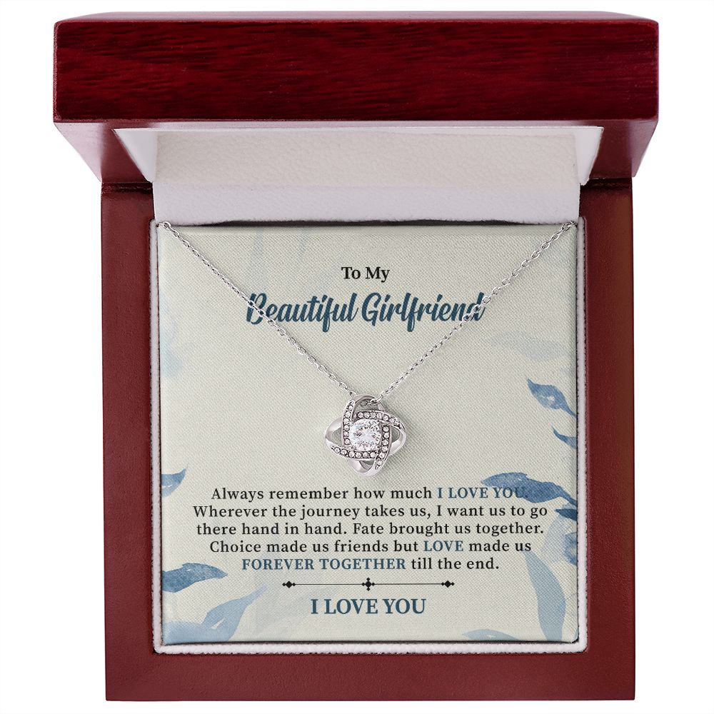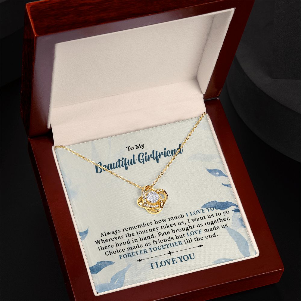 Imagine her reaction receiving this beautiful Love Knot Necklace. Representing an unbreakable bond between two souls, this piece features a beautiful pendant embellished with premium cubic zirconia crystals. Surprise your loved one with this gorgeous gift today!