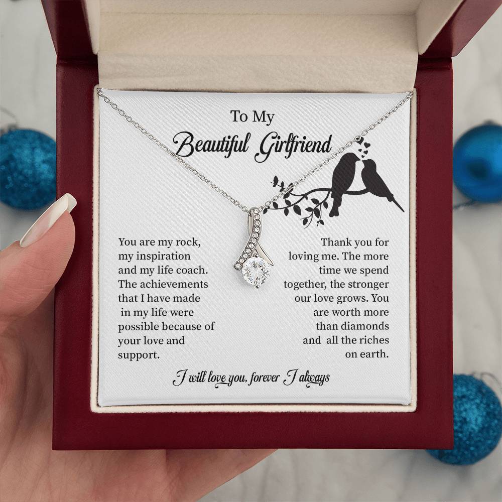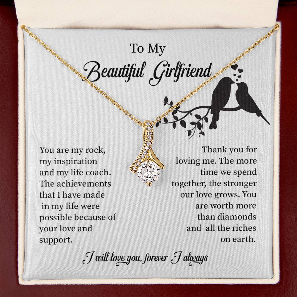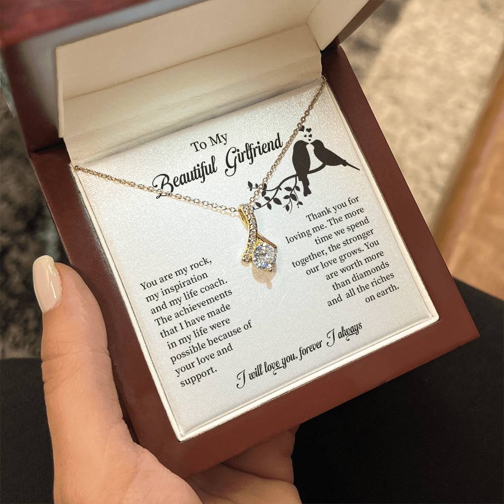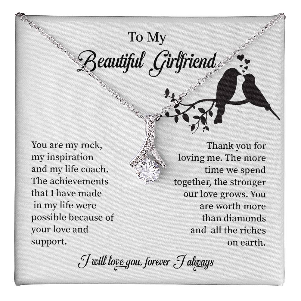 With this beautiful necklace gift to girlfriend, make her feel very much loved. It is a memorable present to your girlfriend during special days or simply to tell her that you love her. It is an ideal romantic jewelry to give to a person in search of the best girlfriend gift ideas or emotional gifts to her in order to make memorable moments.