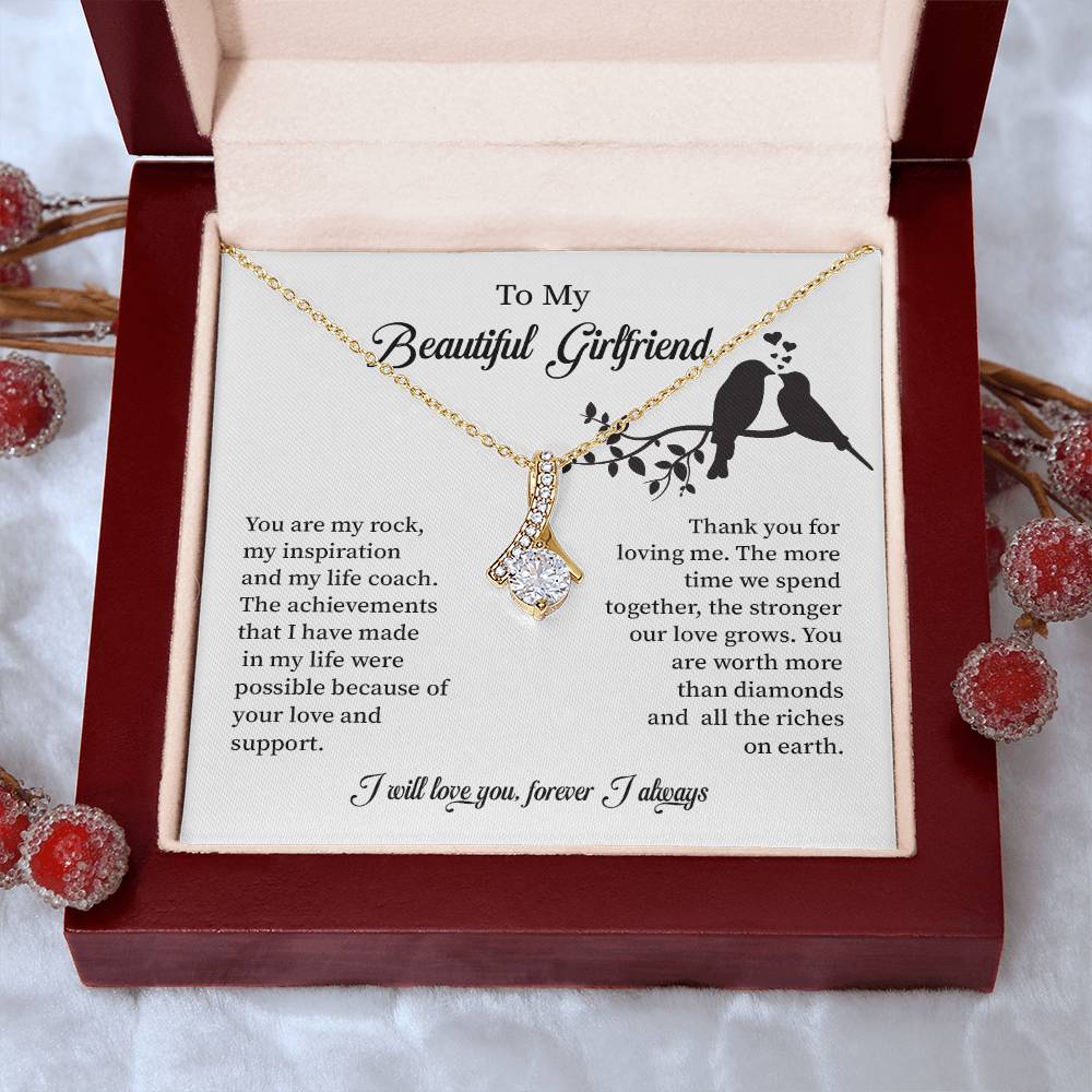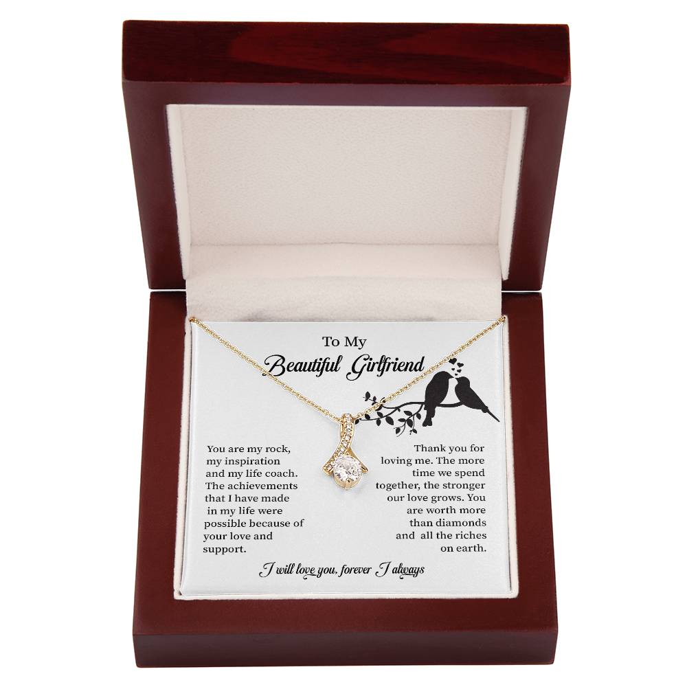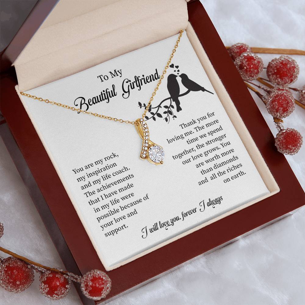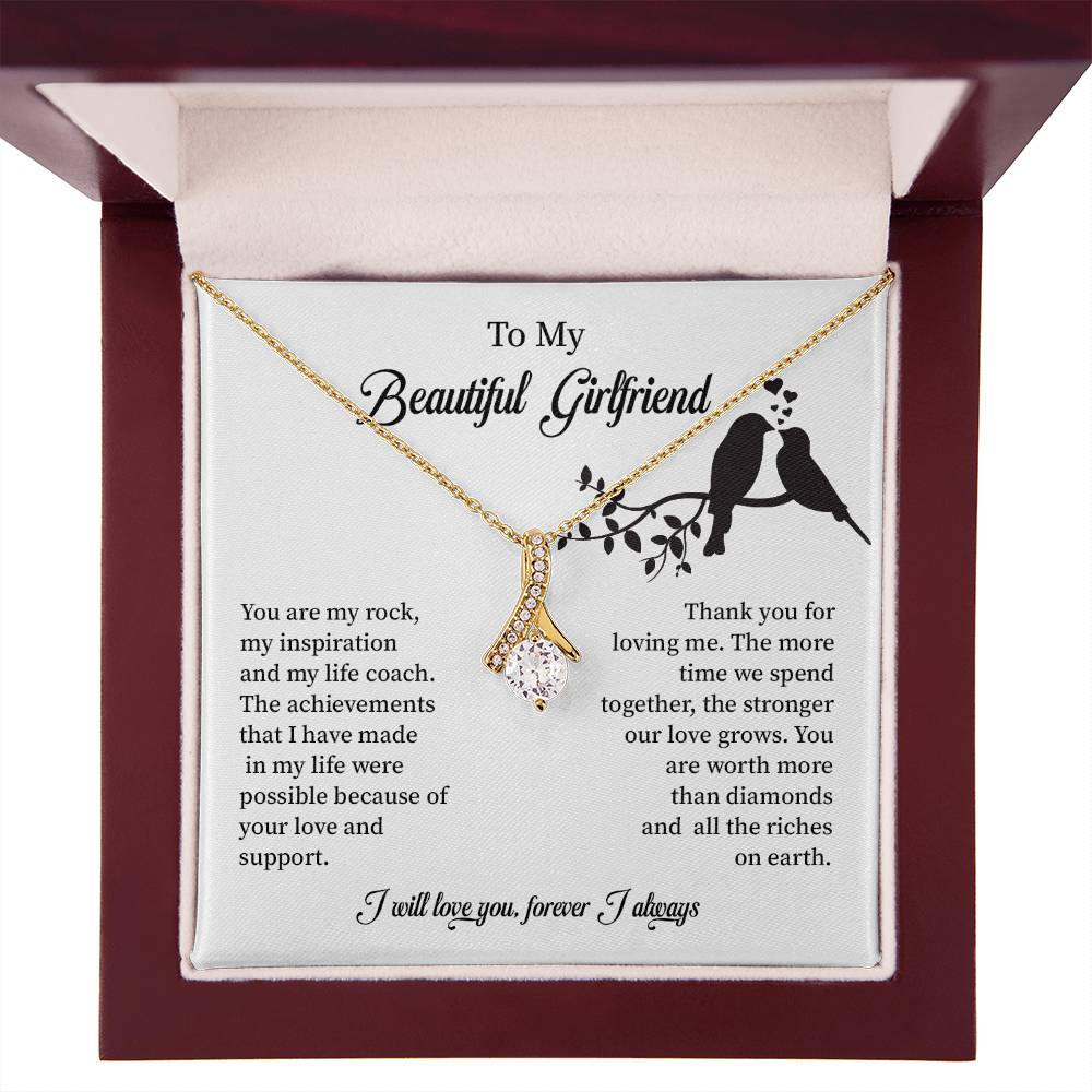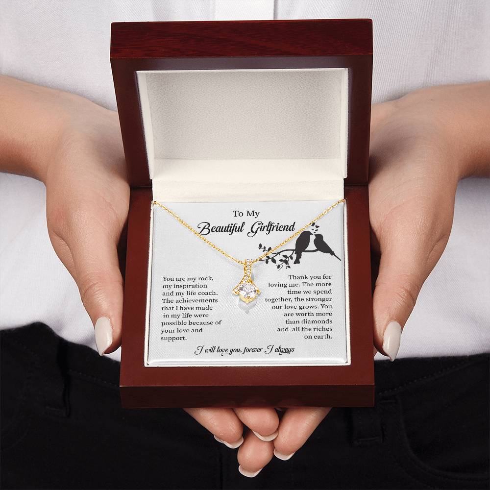 With this beautiful necklace gift to girlfriend, make her feel very much loved. It is a memorable present to your girlfriend during special days or simply to tell her that you love her. It is an ideal romantic jewelry to give to a person in search of the best girlfriend gift ideas or emotional gifts to her in order to make memorable moments.
