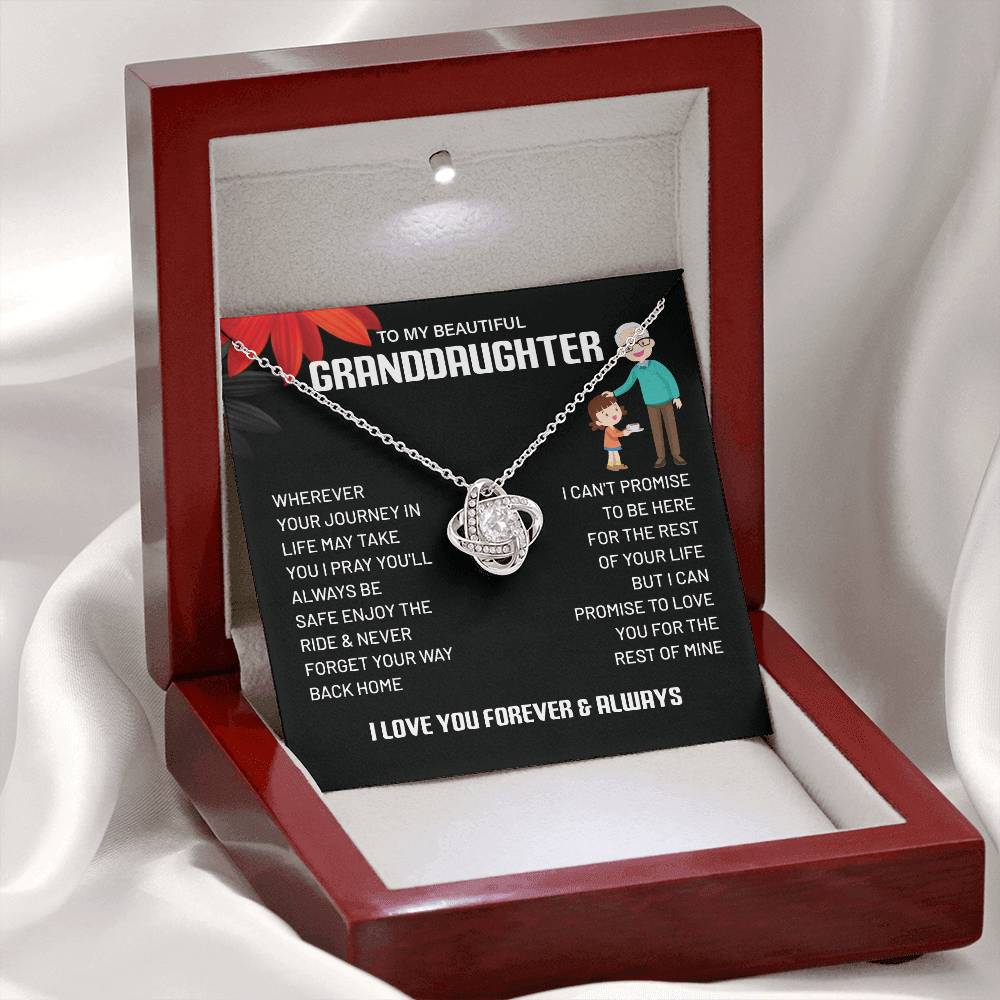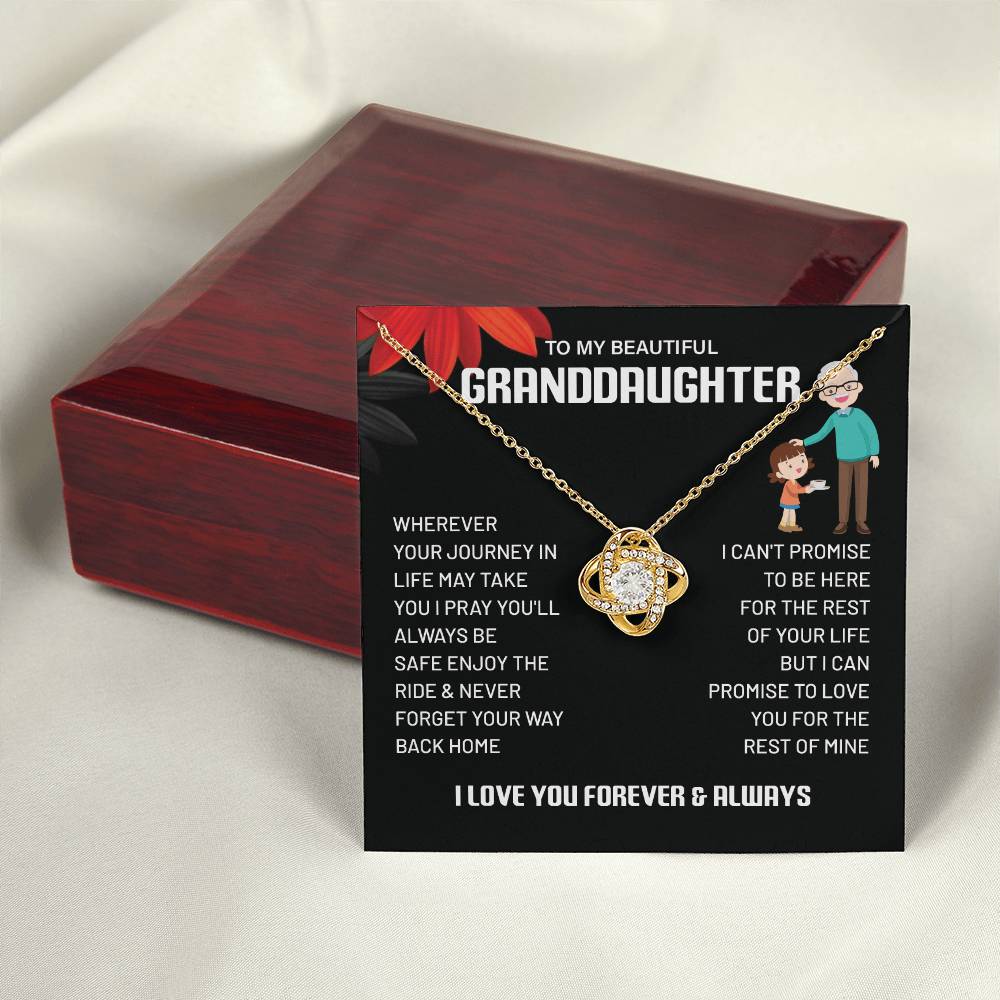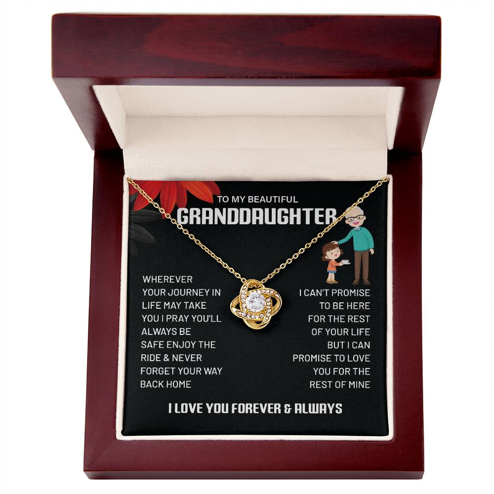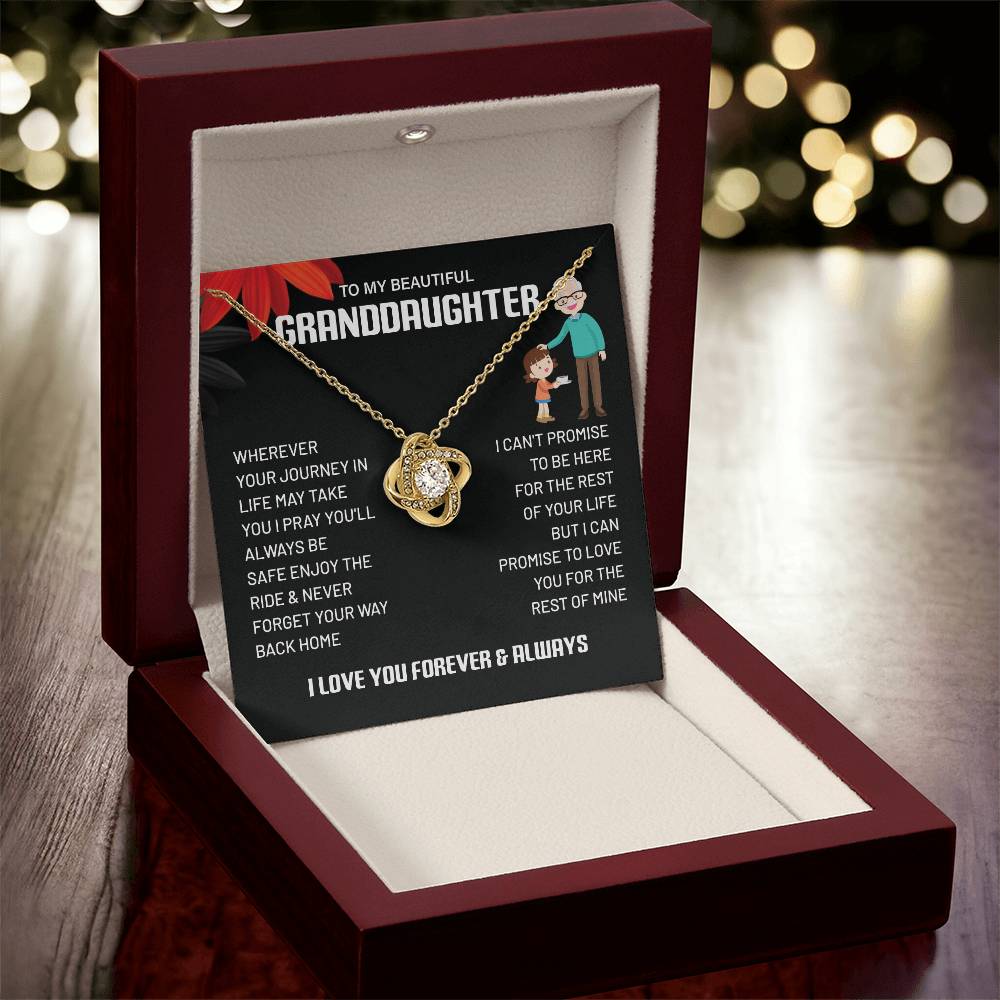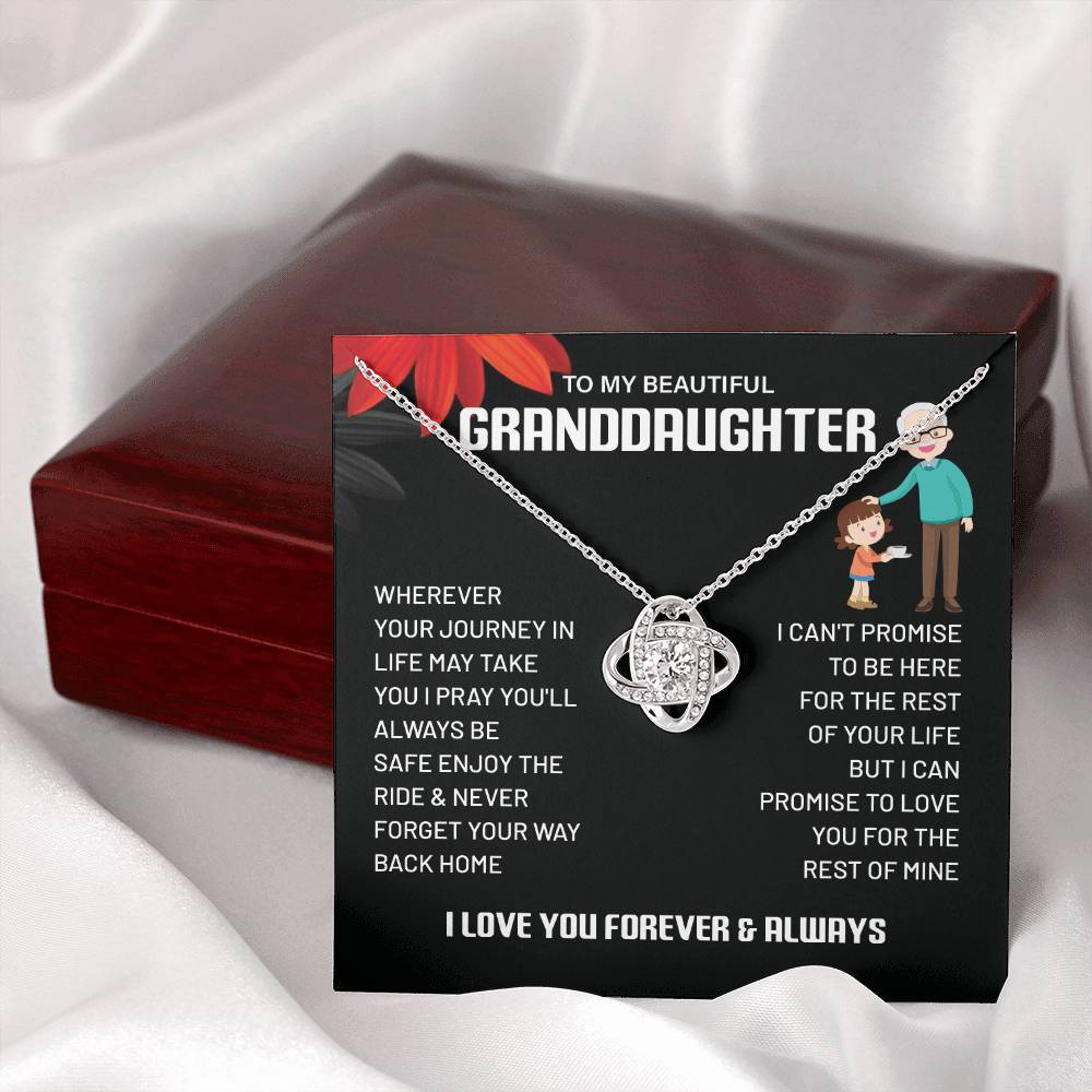 This is a heartwarming gift to your granddaughter as she goes through life, a necklace that is a gift of love by her grandpa. This classic jewelry is a lovely reminder to her that she will always be in your heart- no matter how long her journey is. This necklace is ideal as a birthday present to a granddaughter, a graduation present to a grandfather, and a gift of grandpa to granddaughter. The message on the necklace is a moving one that she will cherish all her life.