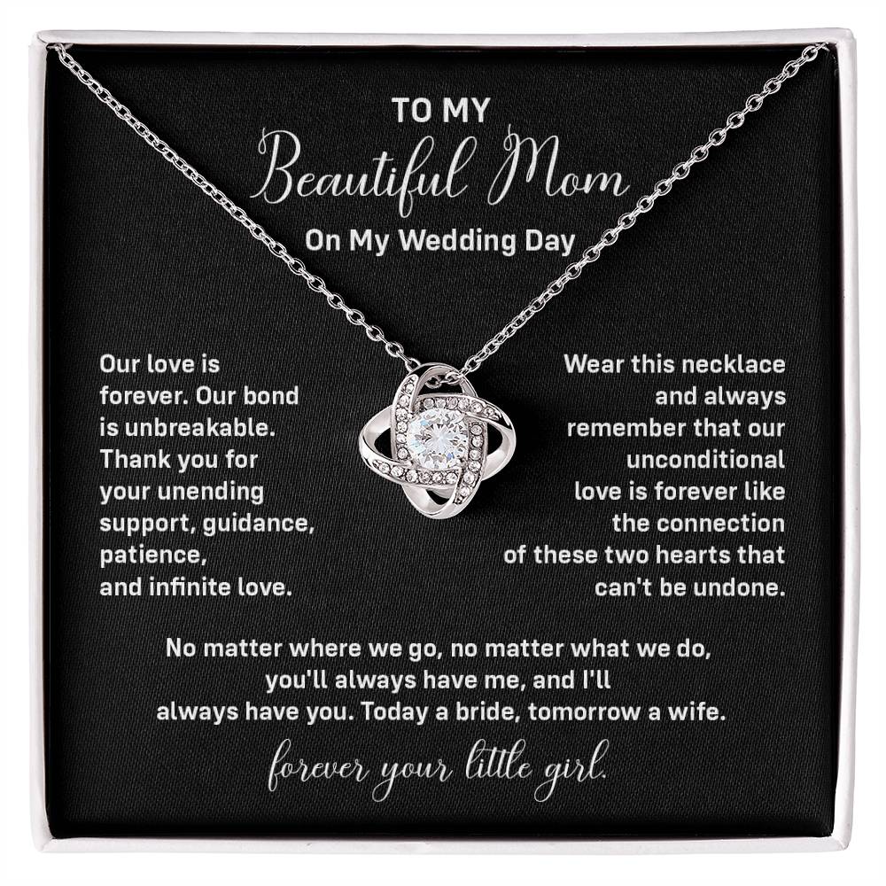 Your special day is the day to treat your mother who has been with you since the beginning. It is a heartfelt necklace with a beautiful message, and it is packed in a beautiful gift box and is ideal to give your mom on your wedding day.