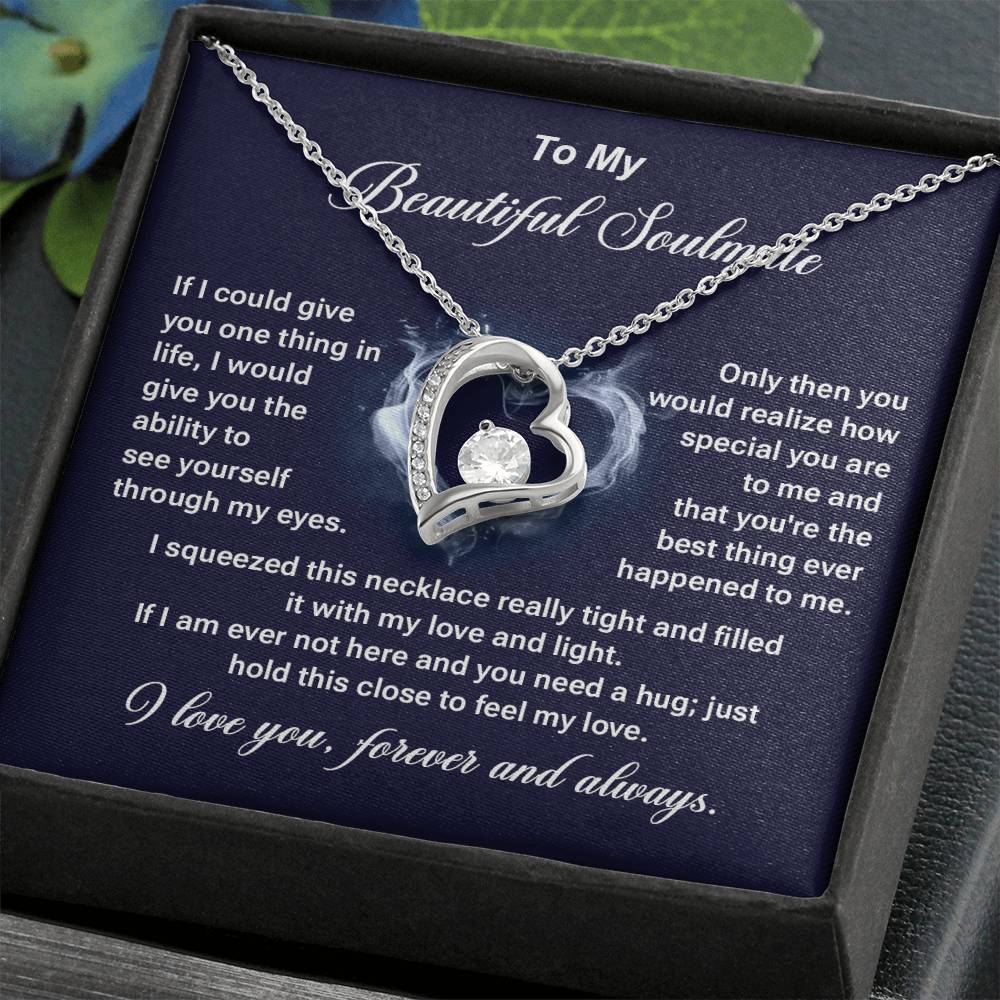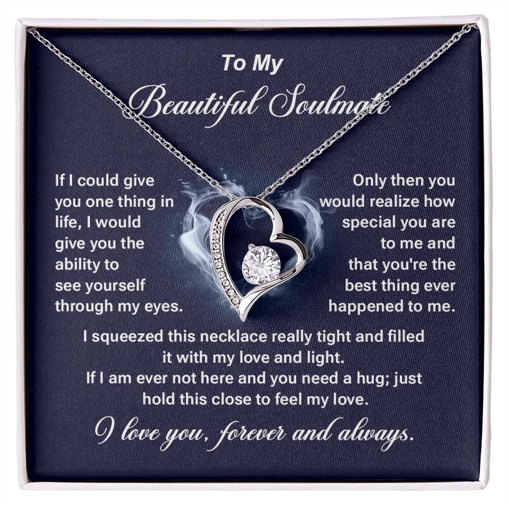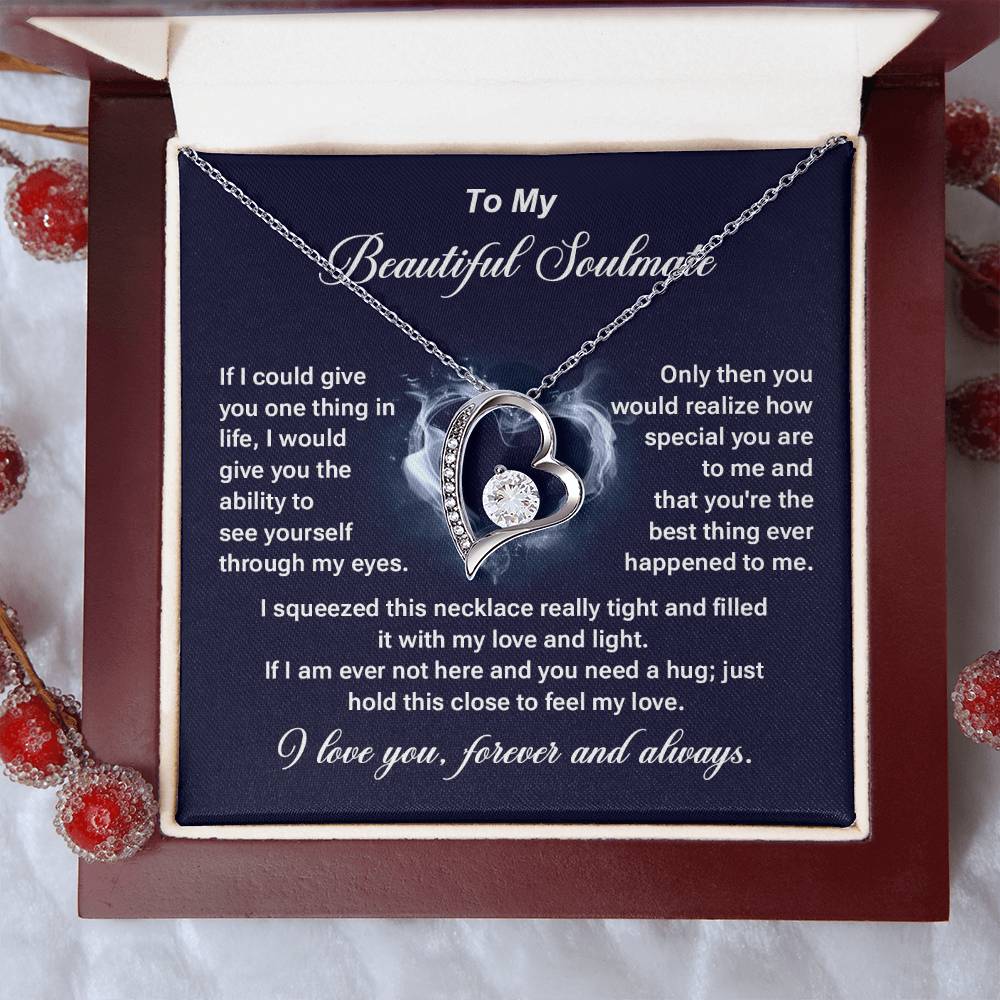Soulmate Necklace Gift for Her Love Heart Pendant with Deep Message Card