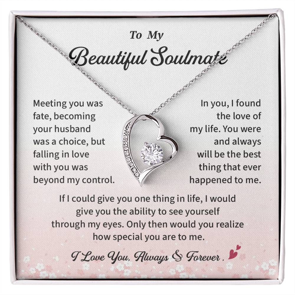 Soulmate Necklace Gift for Her from Husband Beautiful Pendant with Romantic Message Card