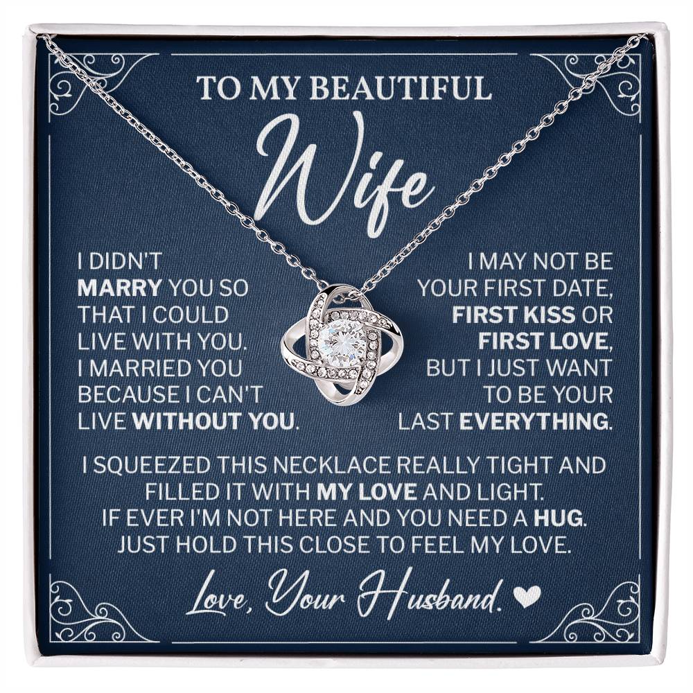 Demonstrate your wife how much you love her with this sophisticated necklace gift set that includes a romantic message card. This classic jewelry was made to be worn on anniversaries, birthdays, or simply because you want to. The sentimental reason why you married her is because it is not only to live with her but because you cannot live without her.