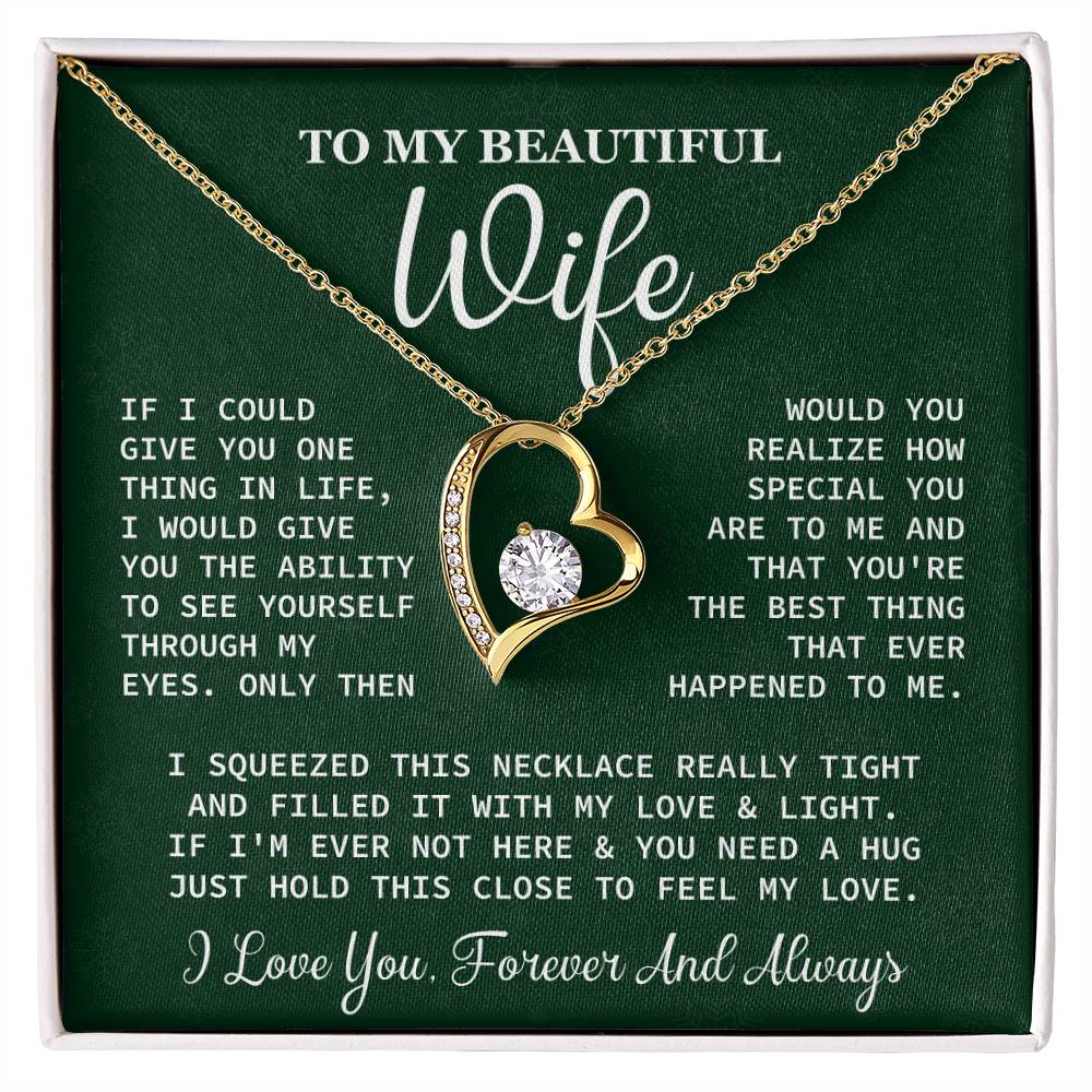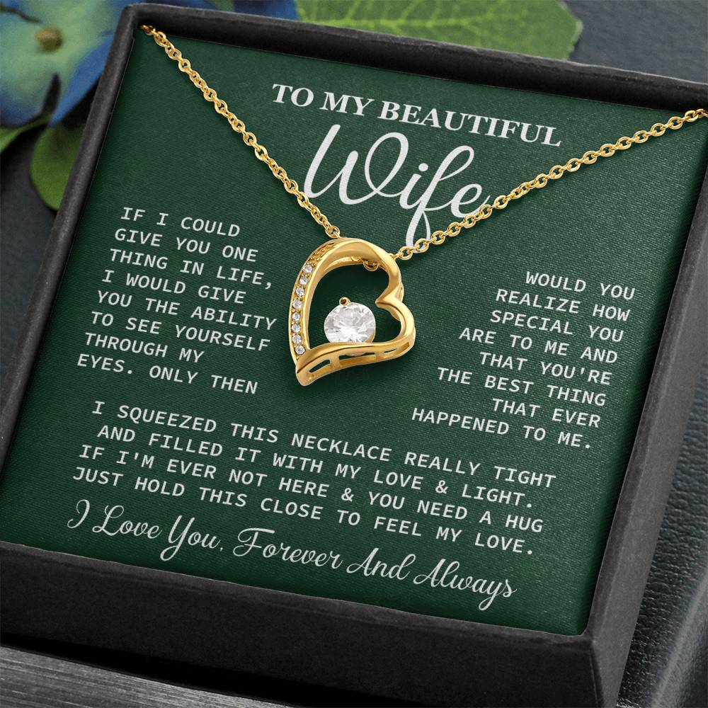 Show your eternal love to your wife with this lovely heart shaped necklace with a moving message card. You can get this gift to celebrate your anniversary, birthday, or just to remind her how much you care about her, this gift will always be a good idea to show your appreciation, devotion, and warmth.