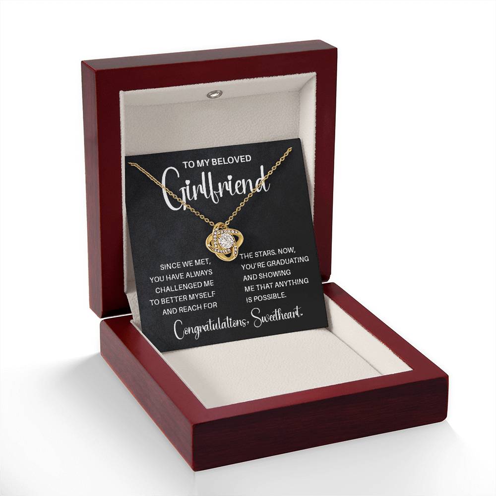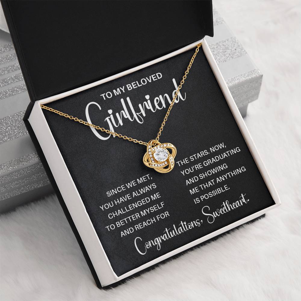 Give her a necklace that highlights your love, respect and pride in her graduation. This lovely pendant comes with a heartfelt message—a great gift for your girlfriend who has encouraged your dreams.