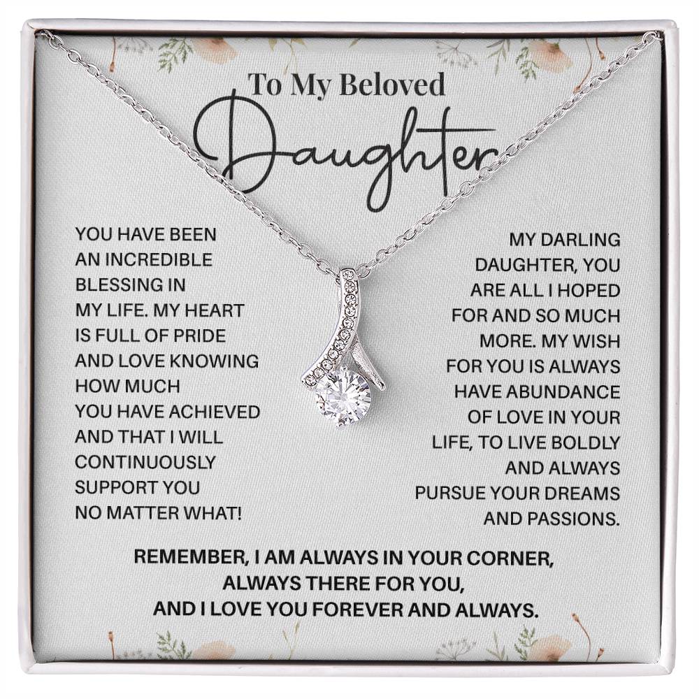 Make your daughter know how proud and closely related you are with this beautiful pendant necklace. This necklace is a great birthday, graduation, or just because present, as it is made to show unconditional love and encouragement.