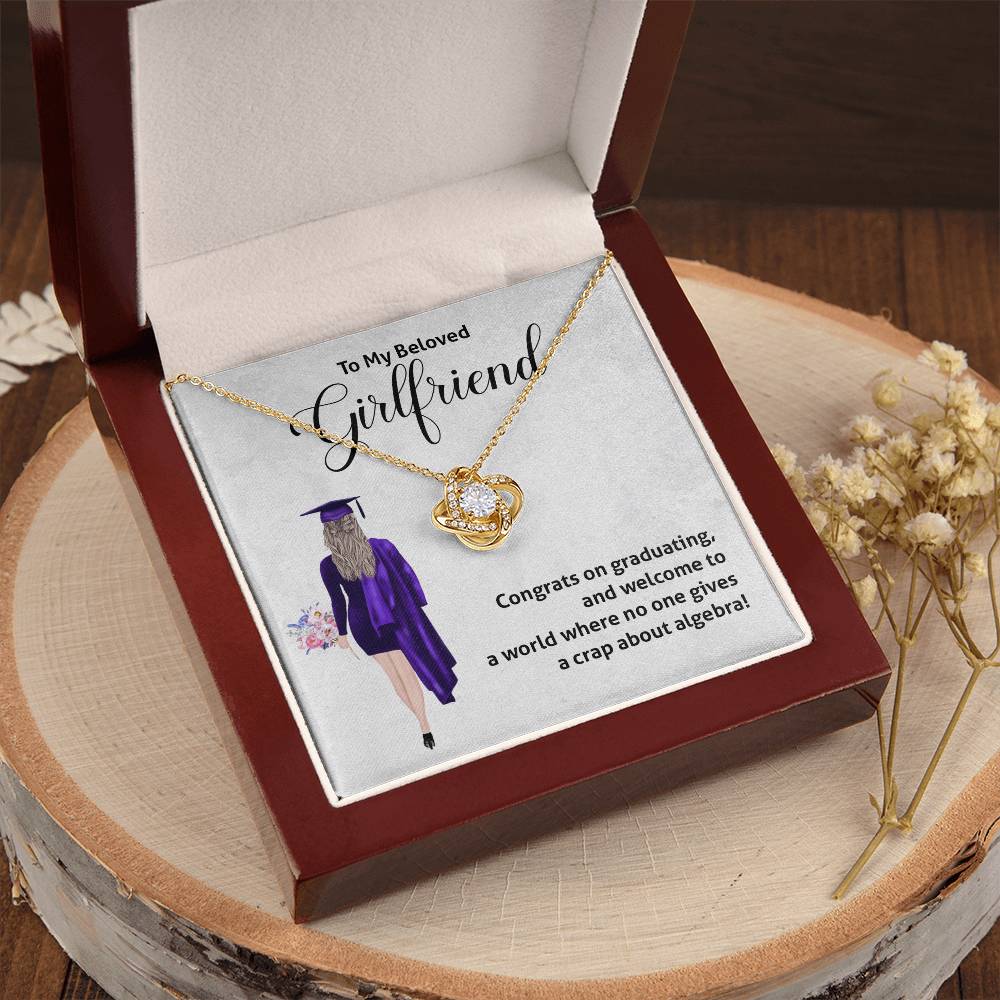 Honor her success by being happy and showing your love for her! This fun graduation necklace for your girlfriend has a message card that teases her about the one subject she won’t miss—algebra. It’s just the right blend of fun and emotion for your sharp and sexy grad.